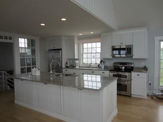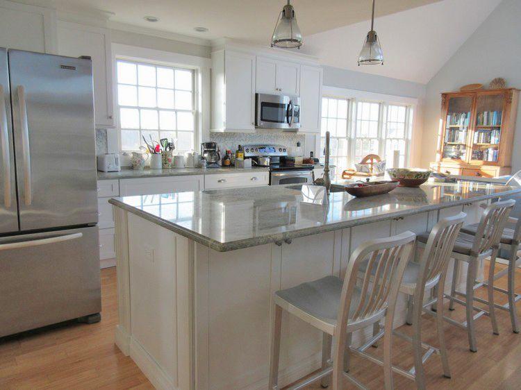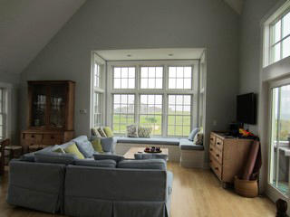 Oceanfront! Perfect Wauwinet beach house. This multi-level home provides panoramic views of the Atlantic ocean, with a glimpse of the Wauwinet Harbor. Enter: Landing with stairs up and down. Up a few stairs to a newly renovated large, open living, dining and kitchen area with doors to as spacious, private deck overlooking the beach. From the entry landing heading down a level: A few steps down to a large bedroom with a queen bed and a private bath. In the hallway there are two bedrooms (2 twins in each) that share the hall shower bath. Also, there is a laundry room; door off bedroom level hallway to beach path and outdoor shower. From living area, a few steps up to master bedroom level (king) with en suite bath (tub and separate shower) with a small deck off bedroom overlooking the ocean and a second, private enclosed porch facing West for sunsets. Top Floor: an open family/playroom with daybed.