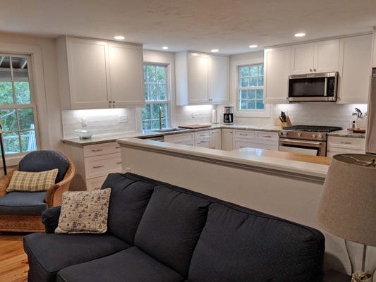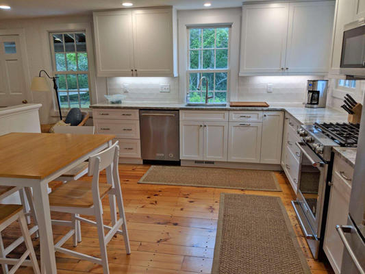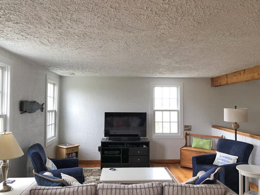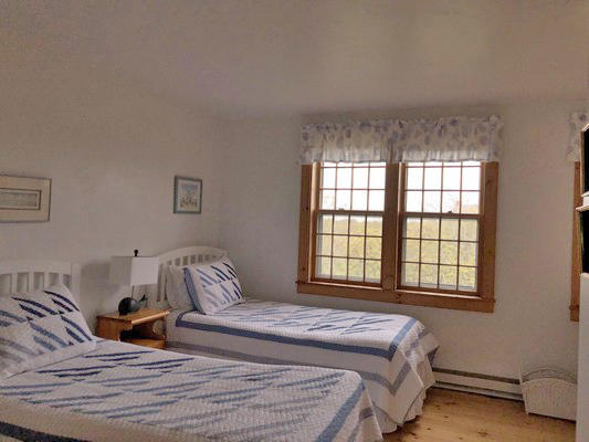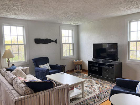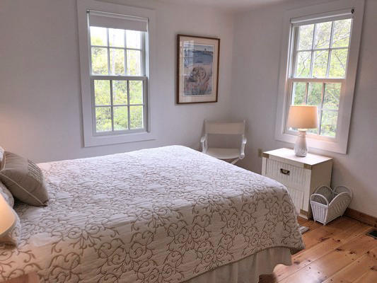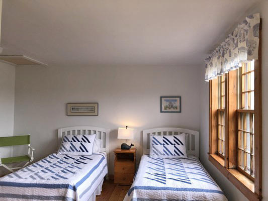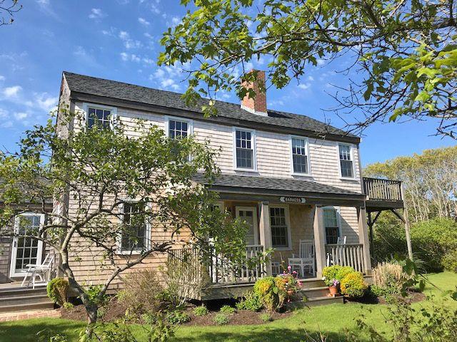 Multiple living spaces inside and out and a large, private yard allow for many entertaining options. Get the whole group together for a game in the second-floor family room or break off for a quiet conversation on the covered front porch. A great value for your Nantucket vacation! First Floor. Laundry/mud room, dining room, kitchen with eat-in area, sitting room with wood stove, bedroom (Twins), bedroom (Queen), hall bath (tub/shower). Second Floor. Living room with flat screen TV, game table, fireplace, master bedroom (Queen) with door to private deck, Jack and Jill bath (shower), bedroom (Twins).
