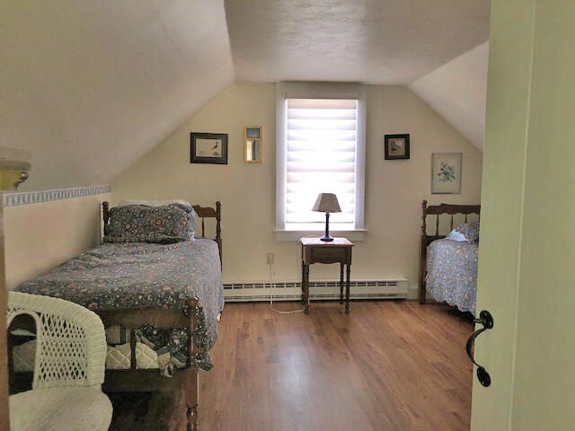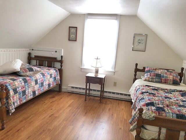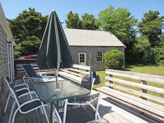 Two-story Cape Cod home located in the Hussey Farms area. Spacious front and private back yards and access to a newer garage. Just about a mile to town and close to bus stop to access full island resources. First floor: Living room with fireplace and doors to back deck, dining room, kitchen, Bedroom (queen), bath (shower). Second floor: Bedroom (twins), bedroom (twins), hall bath (tub/shower). Window a/c units in each of the bedrooms.