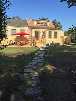 Private cottage located near S. Shore beaches, 0.6 mile to closest beach – ideal for fishing and beach driving, 1.2 mile to Surfside beach and 2.4 mile to Main Street. Secluded in the pines, with access to the bike path and nearby public transportation. Bright natural light throughout, with finished pine interior and cathedral ceiling in kitchen. Kitchen is fully equipped. Full bathroom has shower and washer dryer. Cozy bedroom and TV room with cable, wifi and sleeper sofa. Large outdoor area with outside shower, deck, outdoor furniture and gas grill. Lower level has new king bedroom with separate walk out entrance and bath. A perfect place for all seasons.