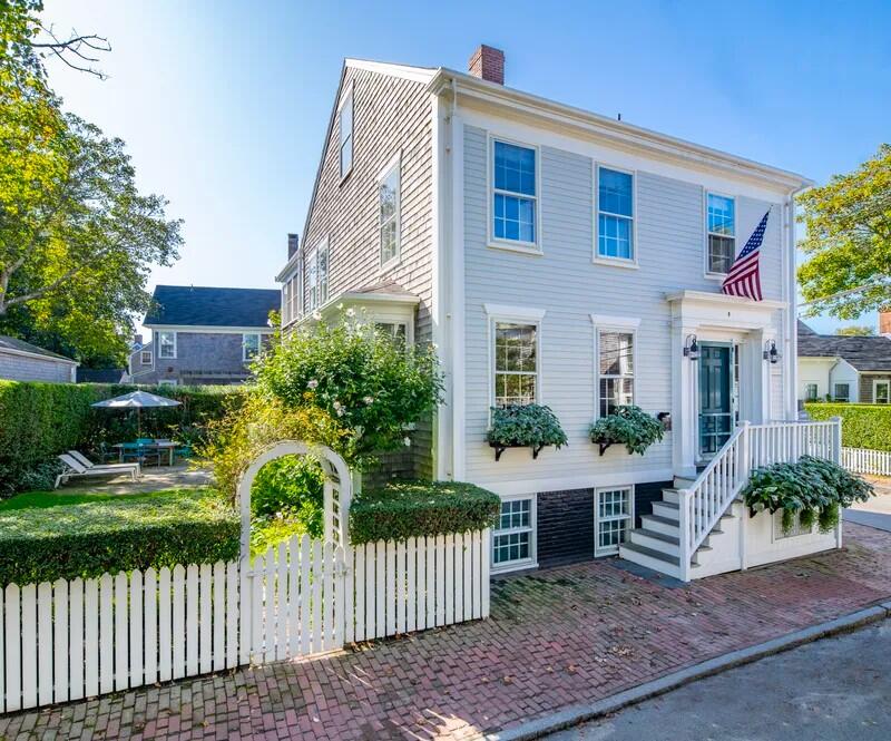 Sitting high above the road located on the corner of Winter and Liberty Street, one of the Old Historic Districts quietest streets, this 1785 home has been immaculately maintained and lovingly renovated to provide all the modern amenities. This property offers a lovely yard with perennial gardens, covered porch, parking space, and moments to Main Street for shopping and dining. First Floor: Entry foyer; Sitting Room; Dining area, with fireplace, is open to the spacious sitting room to the rear of the house with an additional gas fireplace and French doors to a perfect porch overlooking a beautiful side yard; Powder room; Small mudroom. Second Floor: Front stairs lead up to a landing with access to two bedrooms, one with a Queen ensuite bath with shower and the other the master suite with King size bed and spacious bath with shower which connects to the rear bedroom with Twin beds which looks out over the delightful side yard. Large open rear foyer offers ample closet and storage space, laundry as well as a full bath with shower for the rear bedroom; rear staircase winds down to the sitting room below. Third Floor: Spacious and open light-filled bedroom with Twin beds and a full bath with shower. Pets considered with approval from owner.