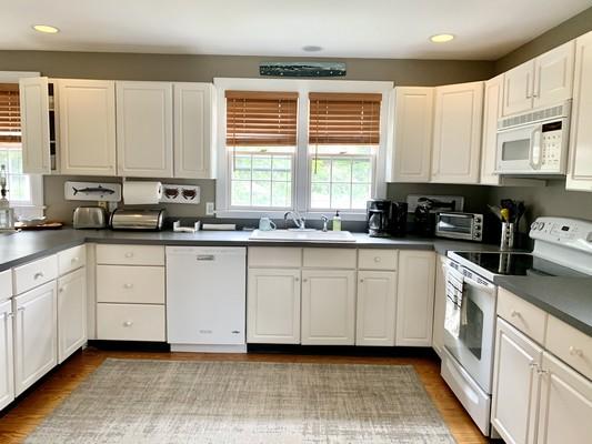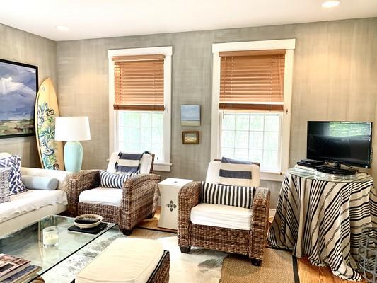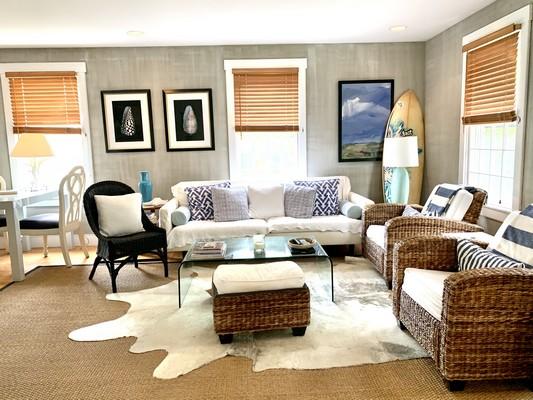 This tastefully furnished home is located in Naushop community. Enjoy the community amenities including tennis courts, pool, playground. Located close to the bike path and shuttle bus route, you will have easy access to all the island has to offer. First floor: Living room, dining room with doors to patio, kitchen, powder room. Second floor: Bedroom (twins), bedroom (twin/crib), shared hall bath (tub/shower), master bedroom suite (queen) with full bath (tub/shower). Third floor: Loft with queen bed and sitting room with twin daybeds. Window a/c units in the bedrooms.