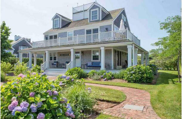 The house is located in what people say is the top spot on Nantucket and we agree: Brant Point is just outside of Town where the ferry comes in and is convenient with or without a car. The Islands best beaches and restaurants are close to the house! No need to schlep, its all right here in this pristine example of an upside down house on the Island of Nantucket. There are all new appliances, gorgeous gardens, 4 brand new bikes, new gas grill on the dining deck off the living room, parking for 2 cars, everything you need for the beach, an outdoor shower right off the first floor bedroom deck , first floor den with wine bar and TV, and wonderful custom outdoor seating areas on all of the 3 decks on this fantastic coastal dream house. Sleeps 8-10 (2 day beds are located on the 3rd floor bridge above the living room which leads to the roof walk) First Floor: Queen bedroom en suite bath with shower, queen bedroom and twin bedroom share hall bath with tub/shower. Second Floor: King bedroom en suite bath with shower.