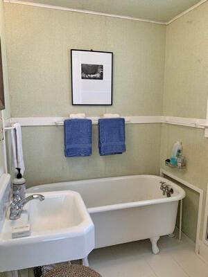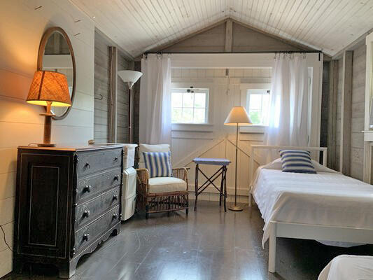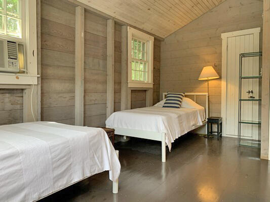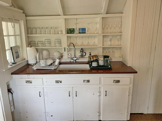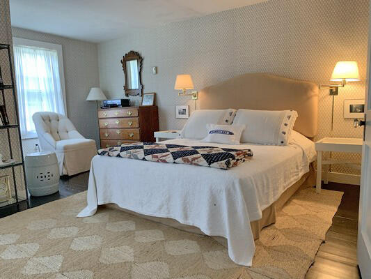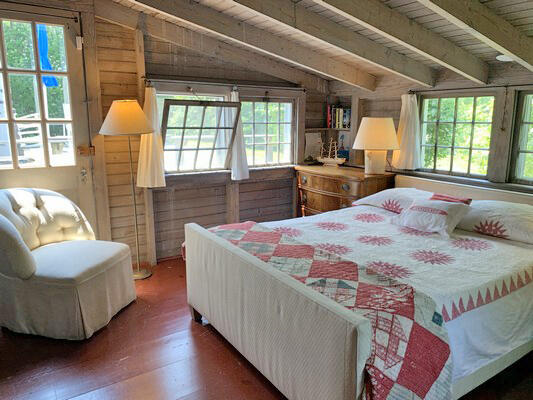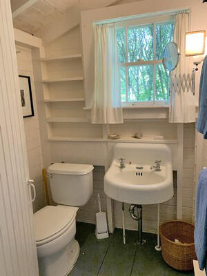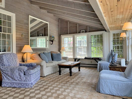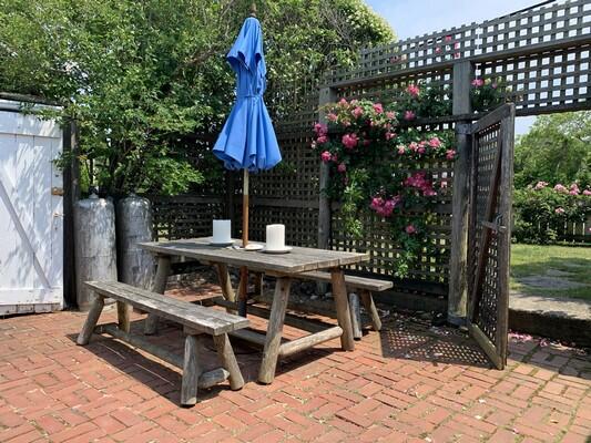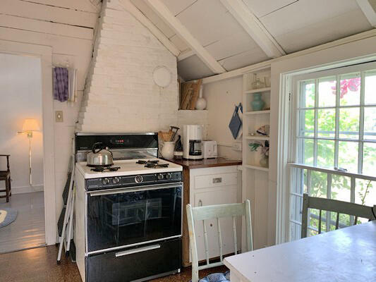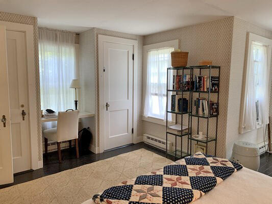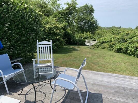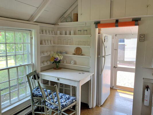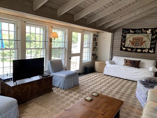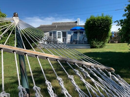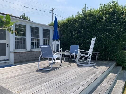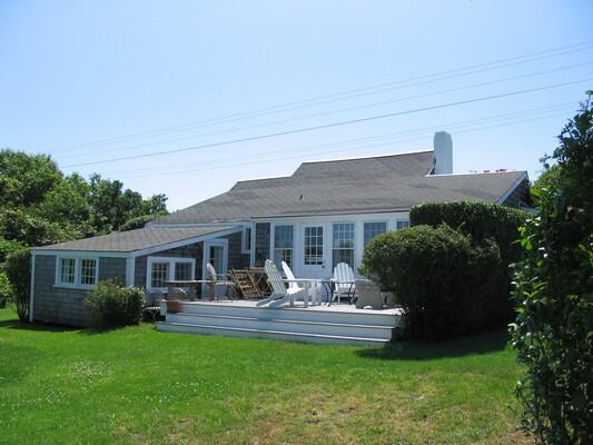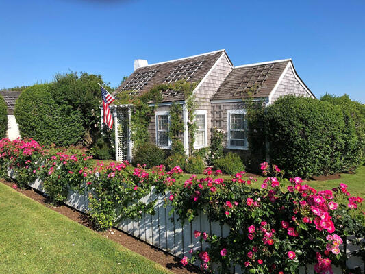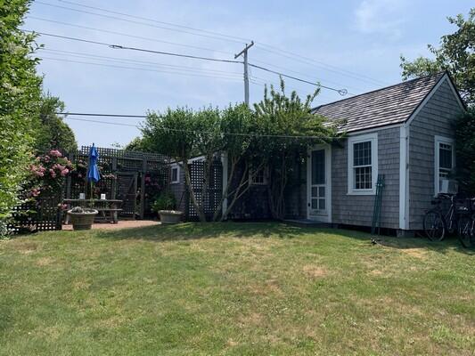 Simple and sweet iconic Nantucket rose cottage with guest quarters. Take a step back in time in this sweet and simple summer cottage. Enter through the mud room and into a small kitchen with seating for two. Kitchen leads to dining room with farmhouse table and on to living room with lots of windows and a door to the back deck. Living room leads to back hall with laundry area, master bedroom with queen bed and private bath (tub), guest bedroom (queen) and split hall bath (shower across the hall). The separate guest quarters contain a bedroom with two twin beds and a second bedroom with one twin bed and a hall bath with a large tiled shower. The back yard offers lots of privacy from Polpis Road.