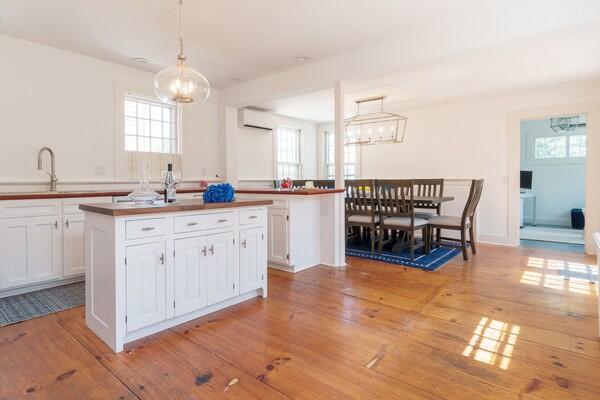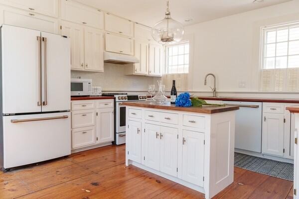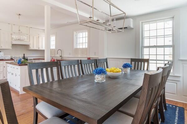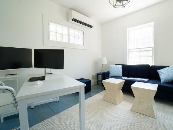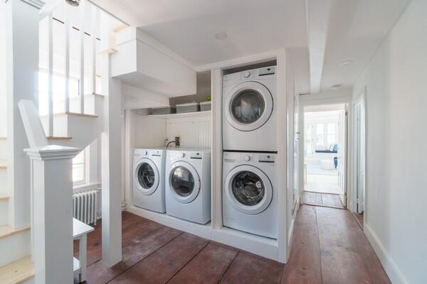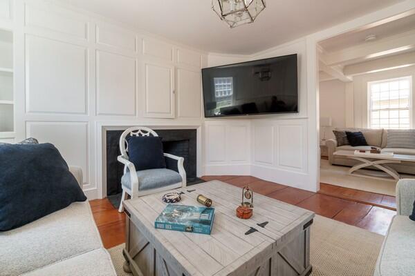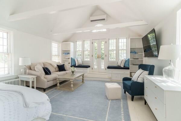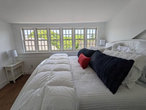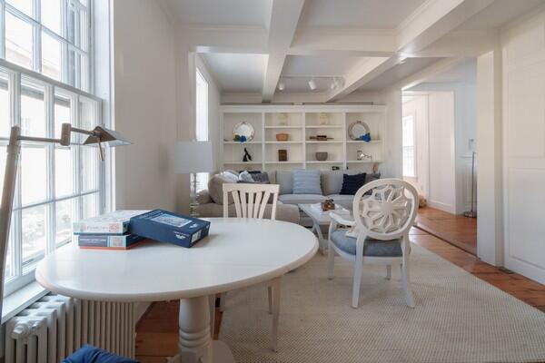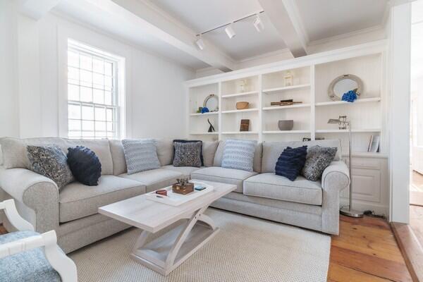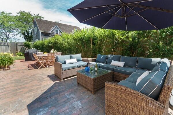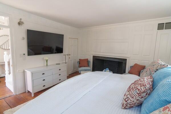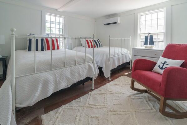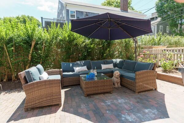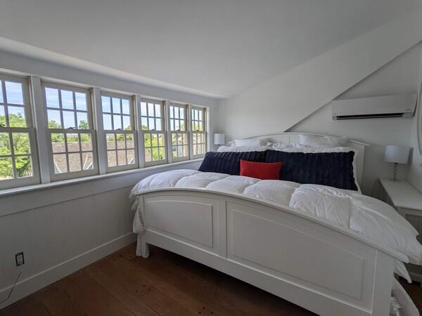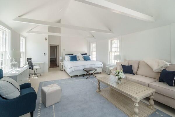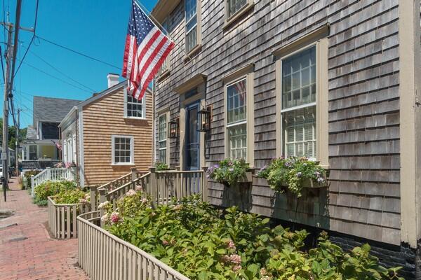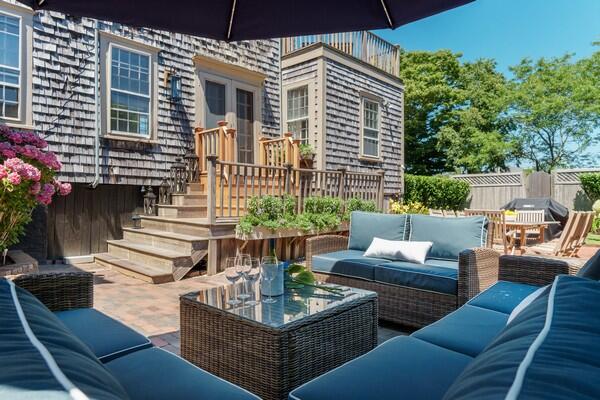 Beautifully updated 1800’s Sea Captain’s house offering three levels set in town near Kayak Beach. The first level has a modern open plan, a bedroom with a king sized bed, a tub/shower bathroom, a den with an oversized flat screen TV, an office and a spacious kitchen and dining area. The second floor has: a large cathedral ceiling master bedroom with a king sized bed, sitting area, TV and balcony/deck, a guest bedroom with two double beds, a third bedroom with two single beds, two washer and dryers and two tub/shower bathrooms. The third floor offers a king sized bed, a tub/shower bathroom and a sitting area with a TV. A private brick patio off the back of the home is the perfect space for relaxing. This house has all the ingredients for a great Nantucket stay!