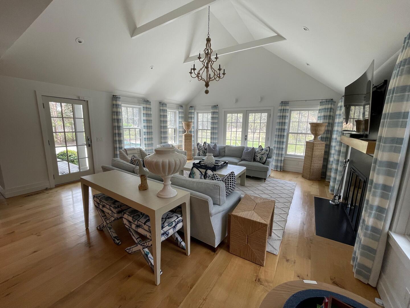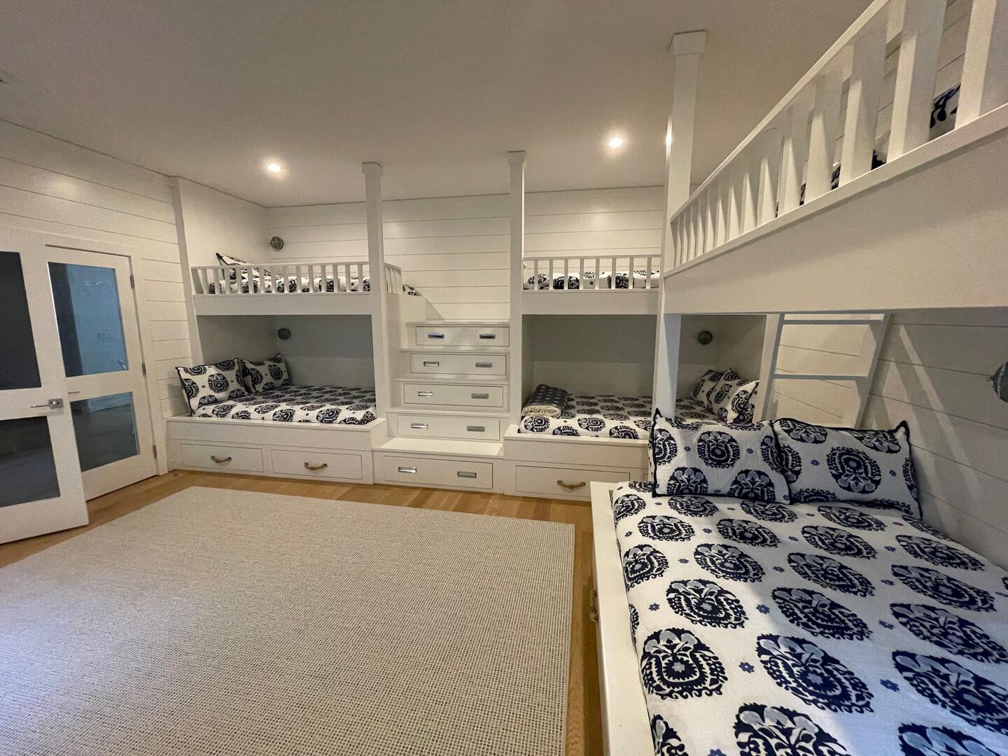 Beautiful shaker style house recently built in 2014 within the exclusive Miacomet Preserve. The property boasts 3 levels of living area, covered porches, and a widow’s walk with ocean and sunset views. The back yard offers a plunge pool, pergola, and outdoor kitchen perfect for entertaining. The property is surrounded by conservation land yet is only 3 miles to town and 1 mile from the Beach. First Level: open concept with views of the conservation land a mud room with laundry room adjacent to the front door as well as a half bath. Additionally, there is a 1st floor master with King-size bed and en suite bath. A generous dinning area abuts the kitchen which enjoys a large island and wet bar. The living room offers vaulted ceilings and french doors which open to the pergola outside. Second Floor: 3 bedrooms all with king beds and en suite bathrooms. Third Floor: cozy little area which offers access to the widows walk which is perfect for enjoying 360 degree un-obstructed views of the island and it’s south coast. The widow’s walk also offers spectacular views of sunsets and star gazing at night. Lower Level: fully renovated with direct access to the back yard, pool and outdoor shower. This area enjoys 10′ ceilings and plenty of natural light from 2 sets of windows. There’s ample seating to enjoy the 70″ HD TV. This area also offers a game table and 8′ long shuffle board table. Bunk room with en suite full bath with full and twin beds. Built in dressers make for a very spacious room. A very special spot for a wonderful Nantucket stay.