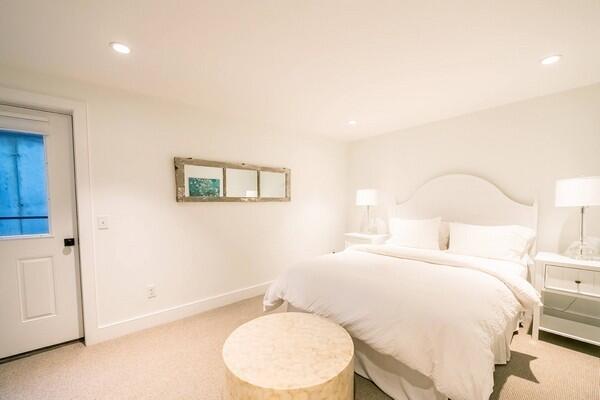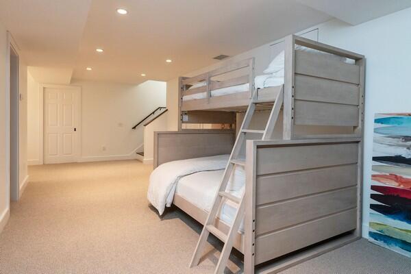 The lower level has a private queen bedroom with access to the outdoors. This level also enjoys a full bath and double/twin bunk. During a recent renovation, a media area was added with an eighty five inch flat screen surround sound and Italian leather sectional couch.