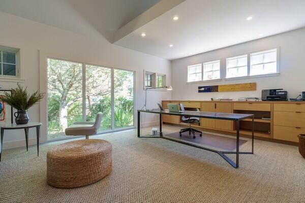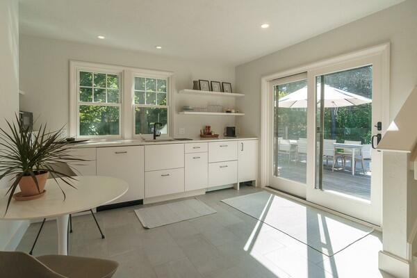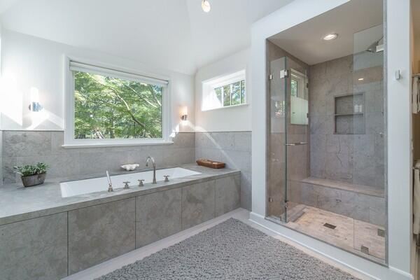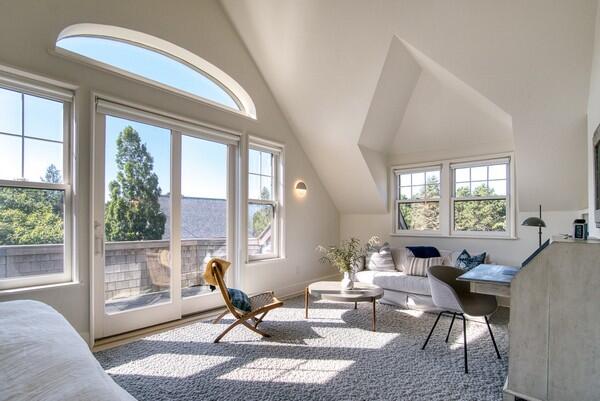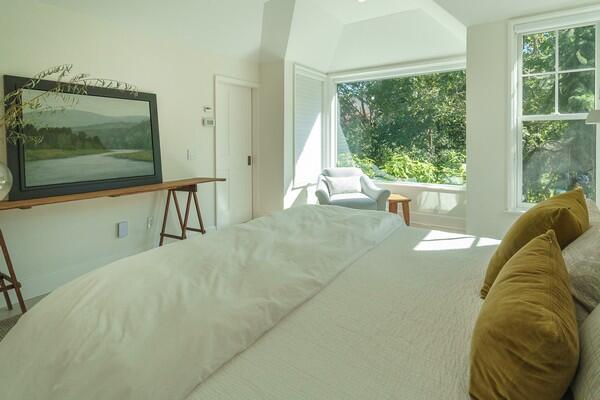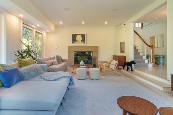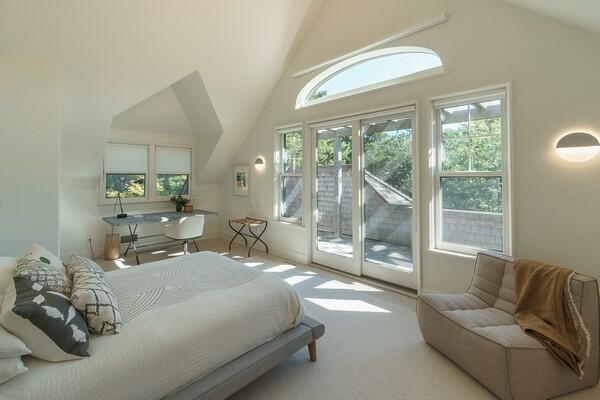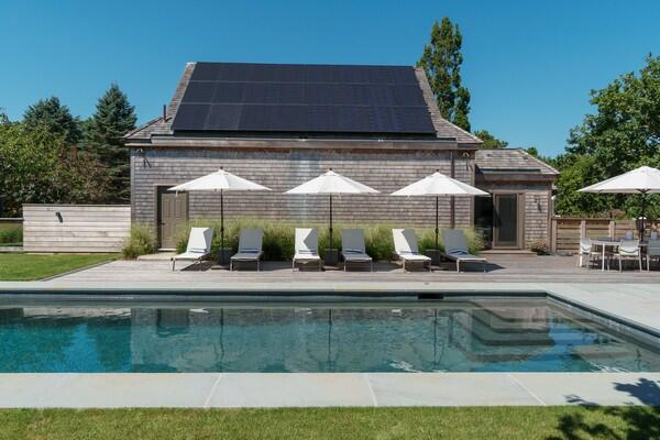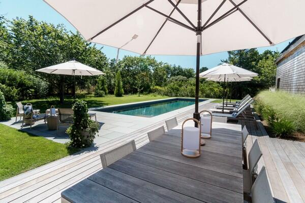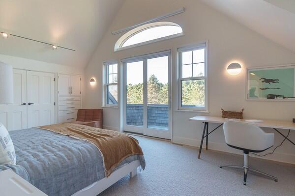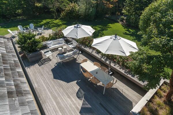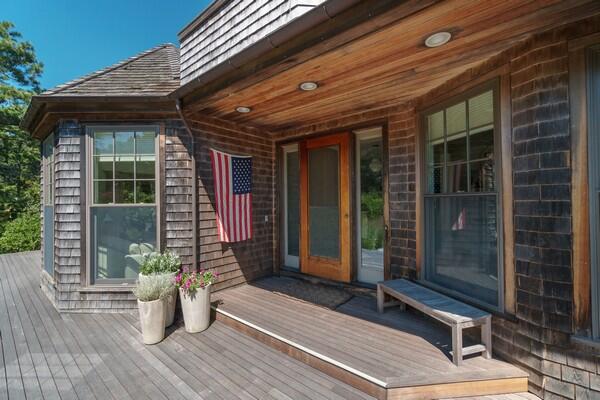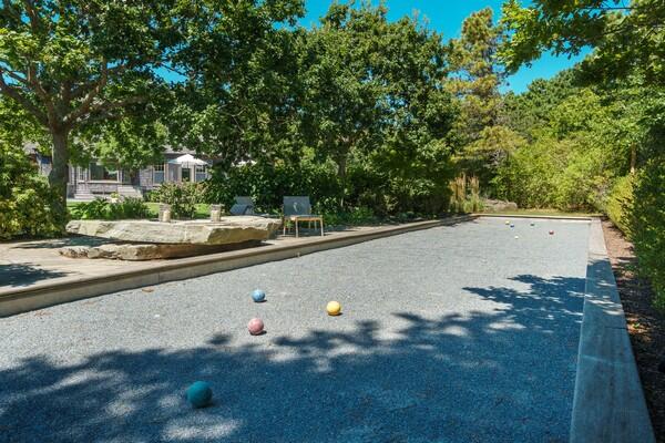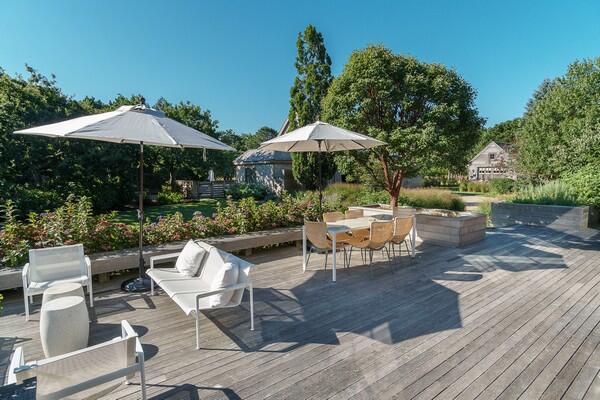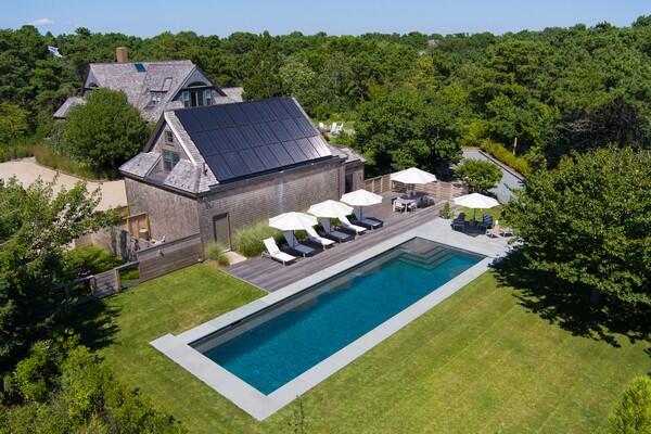 Private estate setting, yet conveniently located on the Western edge of Town. This meticulously renovated home offers multiple living areas, a saltwater pool with a separate pool house with additional living space and extensive grounds with patios, south facing decks and bocce court. Audubon trails and the bike path to Madaket, Dionis, and the Cliff are just around the corner. First floor: Sunken living room with fireplace, 75″ flat screen TV and floor to ceiling windows, game room, beverage pantry with hot/cold beverages, dishwasher and sink and wine/beverage fridge, eat-in/entertain-in kitchen with large island, six burner cooktop, two refrigerators, a second dishwasher, two wall ovens, island with seating for four. Dining table seats 10, sitting area with 40″ flat screen TV, doors to outside deck and BBQ, walk in food pantry, powder room, office/library with fireplace, primary bedroom suite (king) with large walk in closet/dressing room and garden views. Primary bath with spa tub, stall shower, double sinks and Japanese toilet. Laundry room with washer and dryer, door to outside patio. Second floor: Bedroom (king) with walk-in closet and en-suite bath with double sink and tub/shower, outside balcony facing East. Bedroom (queen) withoutside balcony facing North with private outdoor shower. Hall bath with double sink, toilet room and stall shower. Bedroom (Two XL Twins that can made into a King)) and outside balcony facing West. Lower level: Laundry room with 2 washers and 2 dryers (for towels and sheets), powder room, gym with Peloton bike, Concept2 rowing machine, free weights with bench, cable weight machine and various mats/rollers. There is also a 65″ flat screen TV and access to sunken garden and steps up to yard. Pool/Pool house: First floor bath with stall shower, eat-in kitchenette with sink, dishwasher, ice machine, microwave, toaster oven, fridge drawers and coffee machine. Second floor: Bedroom (king) with large sitting area and 40″ flat screen TV, private balcony overlooking yard and pool. Office building: Private office with sitting area. The property also consists of a new 15′ x 50′ salt water pool with motorized cover, fully fenced-in, a Bocce court and fire pit with seating for 8 and an electric vehicle charging port. There is a full solar electric system and geothermal heating and AC, and the whole property is deer-fenced with cattle grate on the driveway.