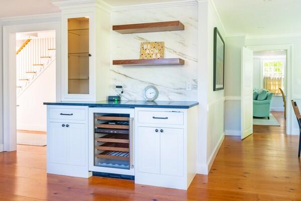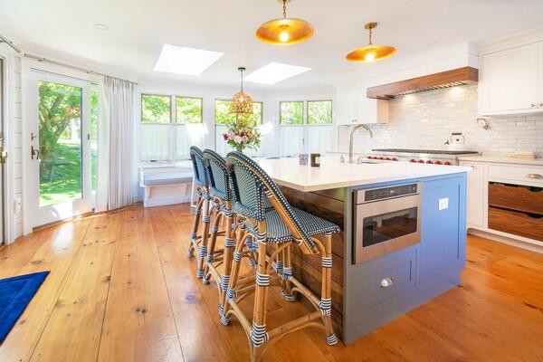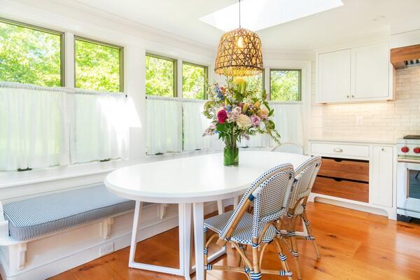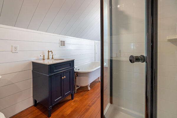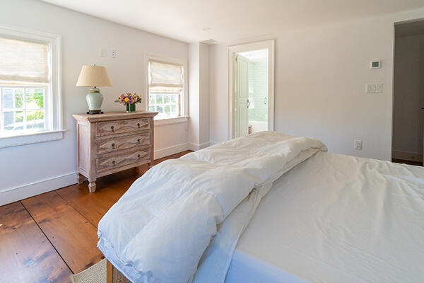 This beautiful, historic home has been restored impeccably with modern amenities and premium finishes. The gracious front yard features a long off-street driveway, and private rear garden and is located just 2 blocks from Main Street. The classic 1850’s built home provides plenty of indoor and outdoor entertaining and relaxing spaces including a spacious living room that opens to a green oasis of mature trees with a stone patio for outdoor dining, to a cozy den, to get away from the hustle of town when desired. Bedrooms are equipped with top-of-the-line furnishings, and well-equipped luxurious bathrooms. The kitchen features a window side dining table and counter seating to keep everyone together in the heart of the home. Bedrooms on the second floor; Primary suite with tub/shower, queen bedroom en suite with private access to a deck with mature wisteria trees and attached pergola, overlooking the back garden, and a 2nd primary suite with king bed and private bath with both free standing tub and shower. The third floor is equipped with 3 twin beds (can be made into two rooms with sliding doors) and open living area with television and a fifth private bedroom with queen bed and adjoining bathroom that includes a claw foot bath tub and a newly tiled shower. 34 Liberty Street will offer a vacationer the privacy and grandeur of a historic home with all of the comforts of modern living.