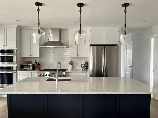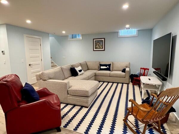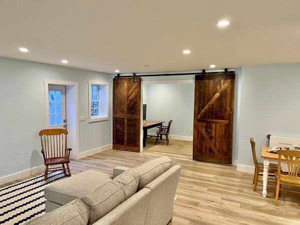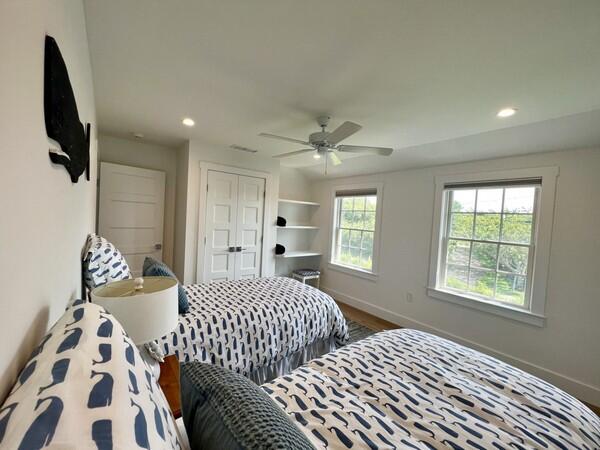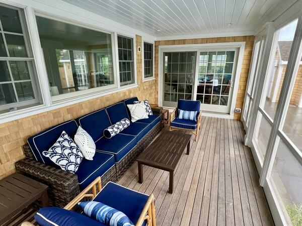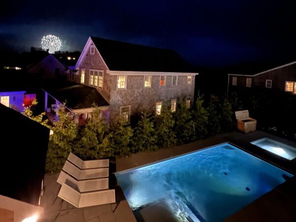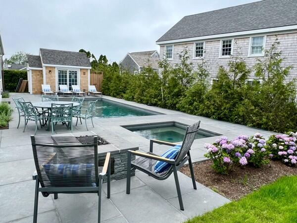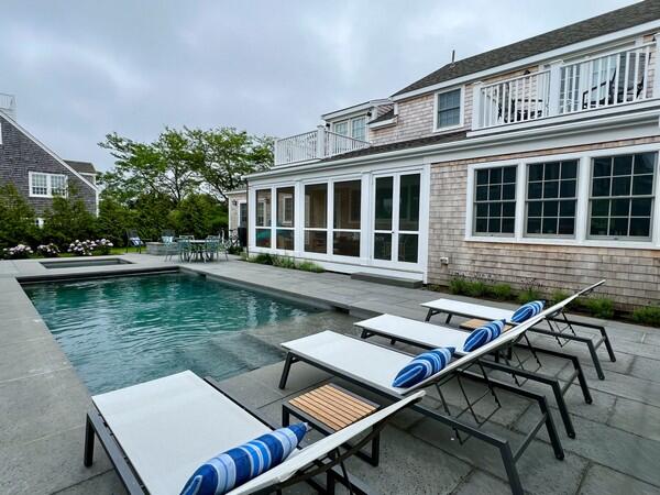 Enjoy fully-equipped modern kitchen with 2 dishwashers, double oven & counter stools opens to living room & dining table. View pool, cabana & hot tub from enclosed porch. Sleeps 12 in 5 bedrooms with ensuite baths. First Floor: primary bedroom with king bed and ensuite bath with shower. Second Floor: Bedroom with king bed and ensuite bath with shower, bedroom with queen bed and ensuite bath with shower. Both of these bedrooms have balconies. and bedroom with twin beds ensuite bath with tub/shower. Lower Level: 1 double bunk bed room accommodating 4 people with ensuite bath with shower. Basement offers office, large sectional for movie nights, play area & dry bar with refrigerator. Two EV chargers in the driveway. Enjoy the salt filtration pool, cabana with 1/2 bath and outdoor shower, and hot tub outside. Or watch the pool fun from the screened in porch off the kitchen or one of two second floor bedroom balconies. You’ll have plenty of room to spread out and come together to relax, entertain, and make wonderful Nantucket memories all just minutes to town, the beach and Something Natural!