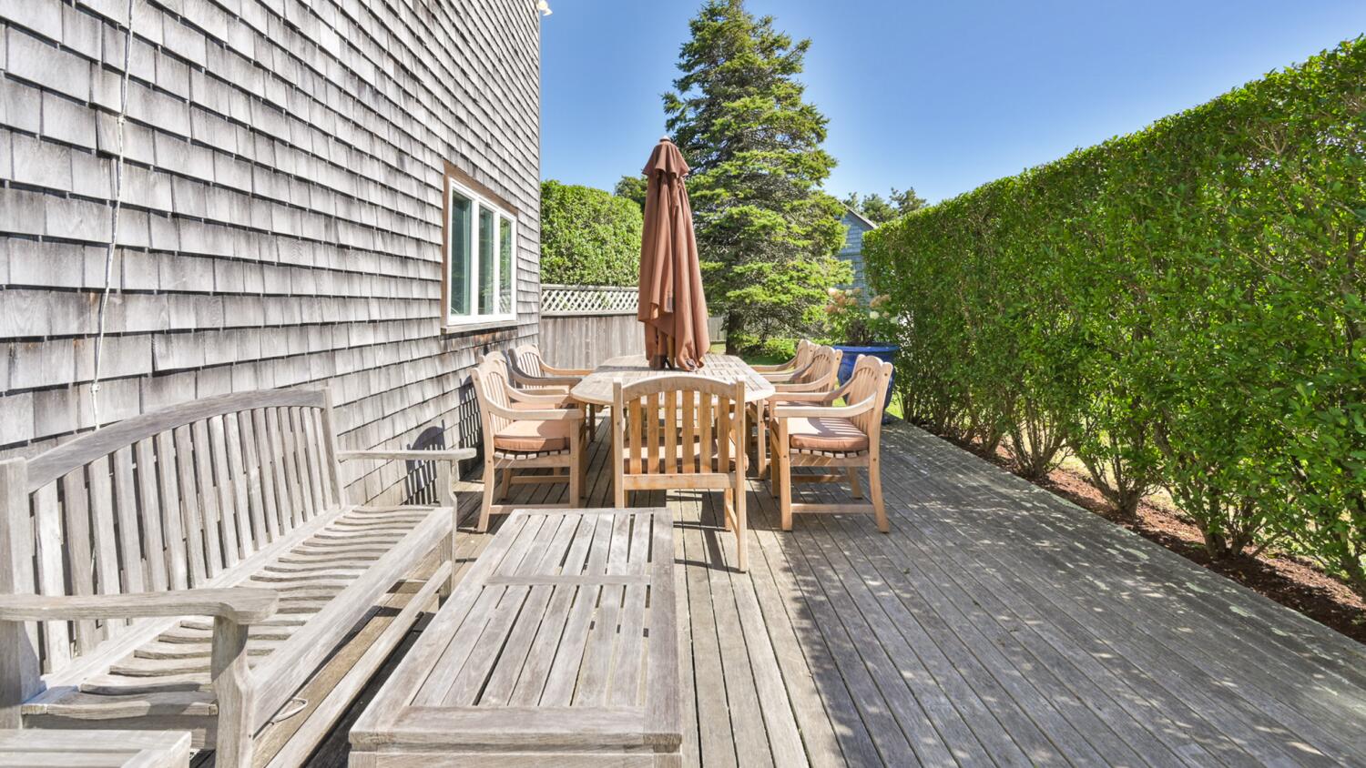Great vacation home for anyone looking for Nantucket summer recreation. Extras include a heated, lined, in-ground pool surrounded by chaise lounges, hot tub, ping pong table, outdoor kitchen, bar area, and a spacious fenced-in backyard.