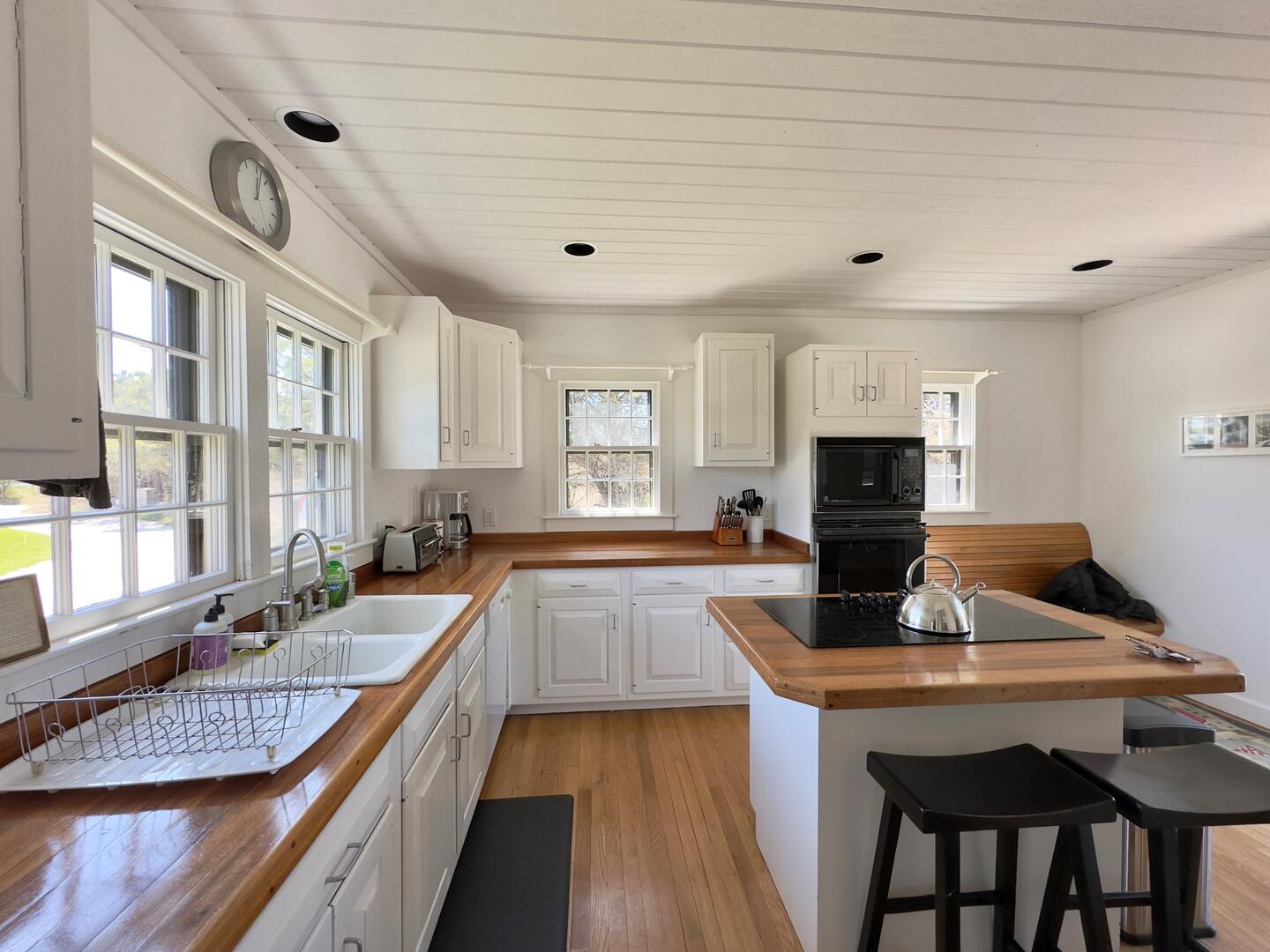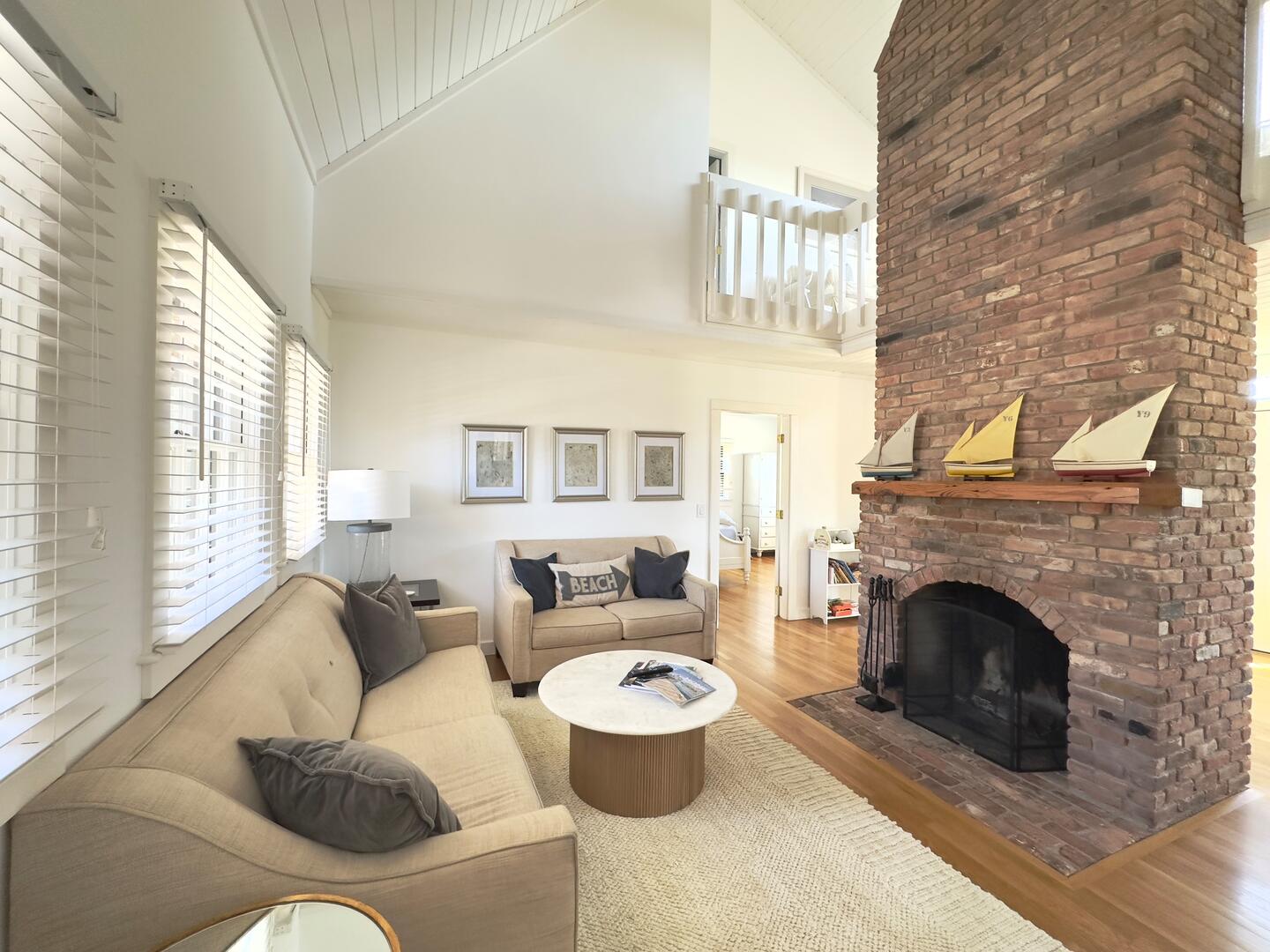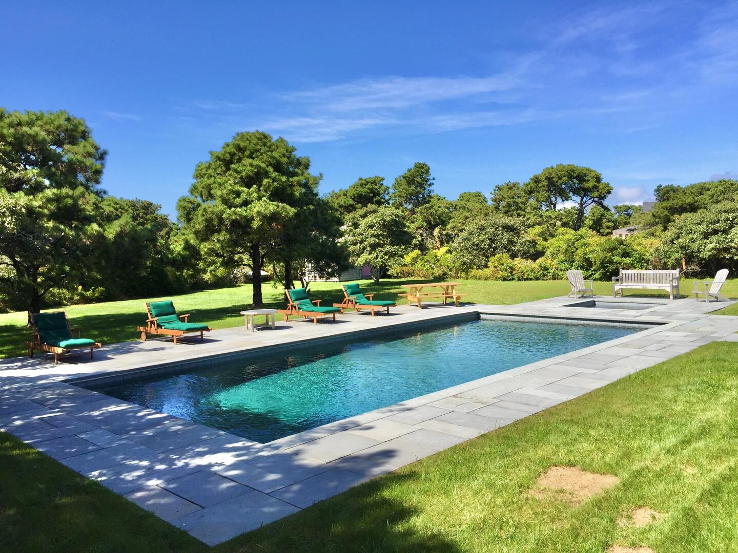 32 Woodbine is set back on a private, long, circular drive in popular Surfside. The first floor lives like a beach house featuring a kitchen that opens out to a large deck, a dining area with a table that seats 8, cozy living room, large powder room with a washer and dryer and a spacious, primary bedroom with a King bed, en suite with a separate shower and tub and a private exit directly to the deck, backyard and pool. The second floor offers a landing with two couches and two guest bedrooms – one with a queen bed and and en suite shower bathroom, the other bedroom with two twin beds and en suite tub/shower bathroom. The outside space features a private, saltwater pool, hot tub, large deck with plenty of outdoor furniture and a generous, manicured, fenced in backyard. The home has central AC and heat throughout for maximum comfort. Pets allowed pending owner approval. The best part of this property is the fabulous location just a short distance to all the pristine, Surfside beaches.