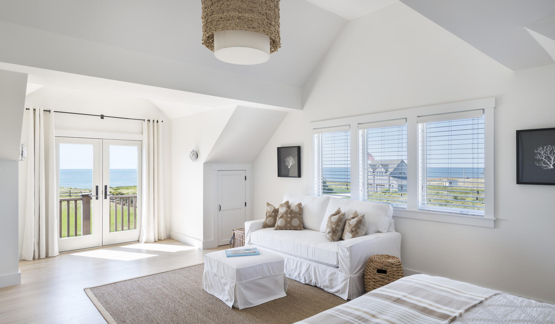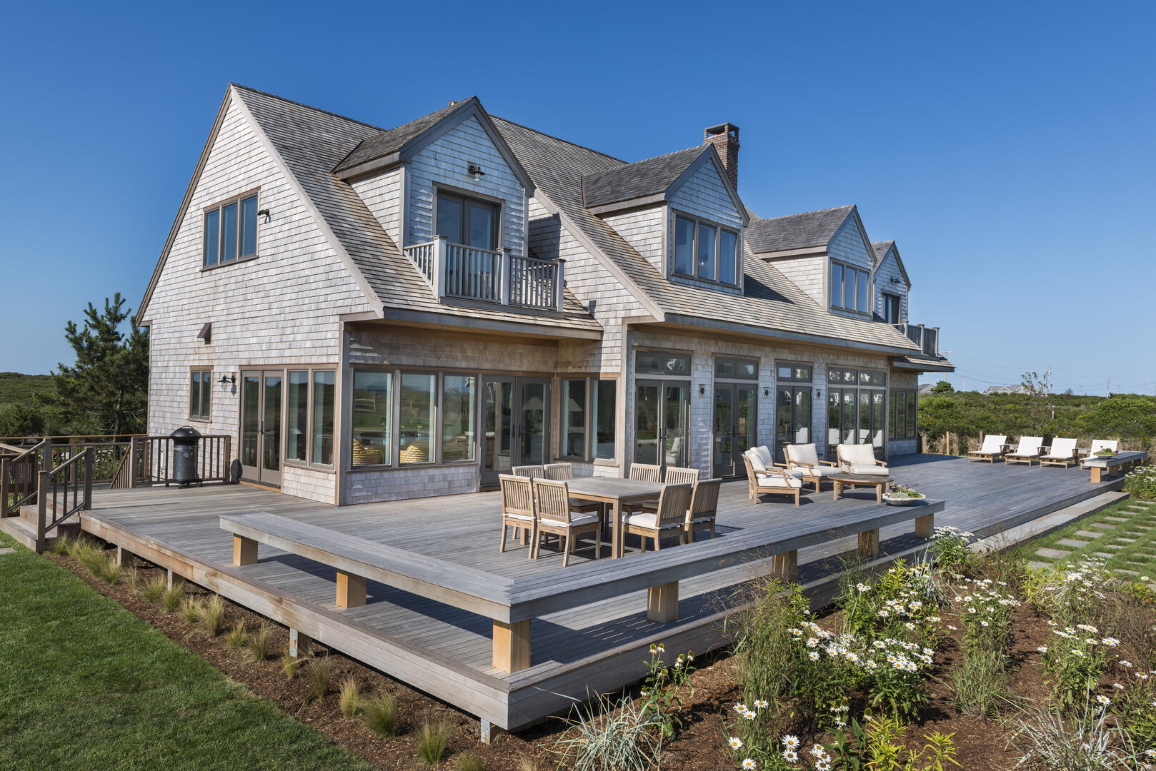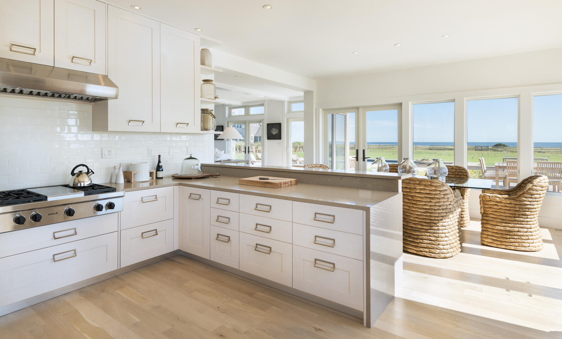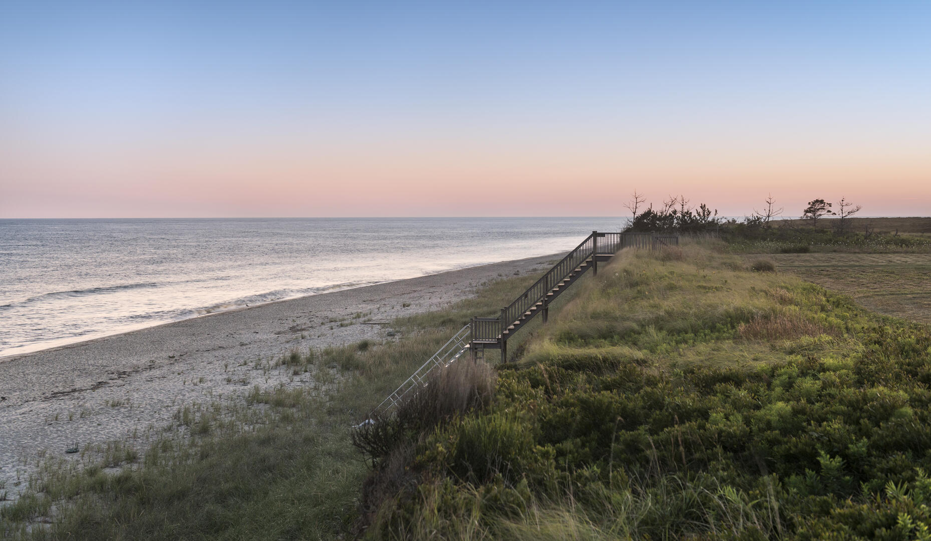 New construction built in 2014 on waterfront estate property. This 3 acre property has a new spectacular 7500 sq ft, 5 bedroom home, with ocean views from every room. Only 400 feet over a perfectly manicured lawn to the ocean and a private beach with 125+ feet of ocean frontage below a towering 50 foot high bluff. The gunite pool with blue stone patio, deck and yard have commanding 180 degree of the Atlantic Ocean and rear views of 300 acres of conservation land. The home is close to the Nantucket Hunting Association and Tom Nevers Field. This home has many amenities including en suite bedrooms, a chef’s kitchen outfitted with Viking appliances, central air conditioning, and more.
