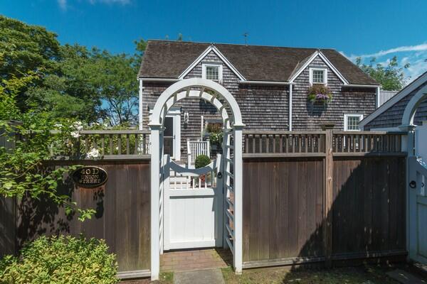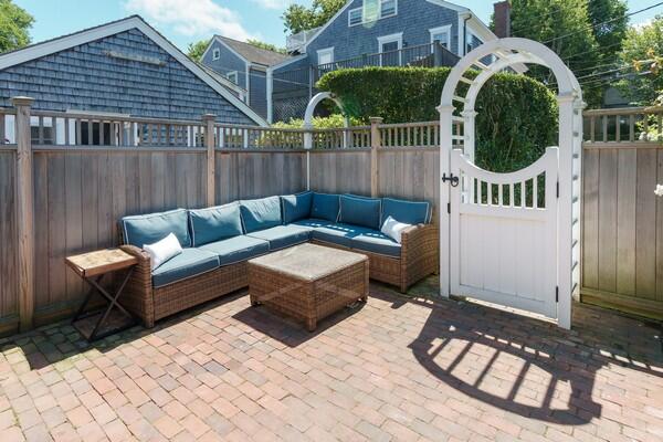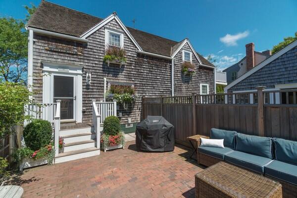 Secret oasis, “Tucked Away”, is located just a third of a mile to Main Street and a fifth of a mile to Kayak Beach on the harbor. This charming four bedroom, two bath post and beam home has a terrific private, brick patio with sectional seating, gas grill, outdoor shower, intimate yard, off street parking, a first floor porch and a second floor balcony with just enough harbor views to remind you that you are on idyllic Nantucket. Great in town locale!