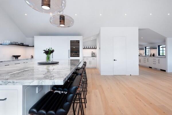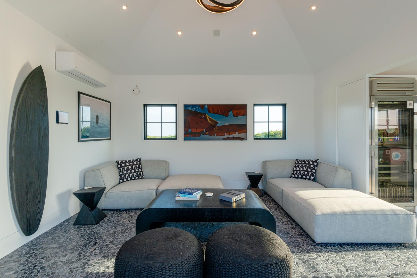 The main house or “The Big Dip” is the main house in a masterfully designed and constructed compound set on 3+ acres. Guests will be able to rest, reflect and recharge in the lap of luxury. This Main house offers 7 bedrooms – all en suite and a studio over the garage. The first floor of the house opens to an expansive living area featuring sliders leading to the yard and pool. A separate office creates a private space for work from home. This level also features four guest en suite guest bedrooms and a primary en suite bedroom with a soaking tub and sliders to the yard and pool. A powder room and Laundry room finish off this level. A custom-built floating staircase leads to the open concept living area of the home with: vaulted ceilings throughout, a chef worthy kitchen offering an oversized island, a dining area that seats 16, a living room with gas fireplace, a well equipped full bar, a separate pantry, half bath, and another primary en suite bedroom with a private deck, soaking tub, walk-in closet and dedicated washer and dryer. On the lower level you’ll find a multi-media/meditation room, a king en suite bedroom, a bunk room with three custom queen bunks with full beds on top and en suite bathroom, a gym, a six-person sauna, another full bathroom and separate laundry room as well as stairs that access the deck. The studio over the garage provide additional private accommodation with a King bedroom and a shower bathroom.