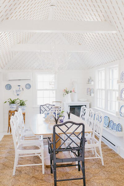 First Floor: Enter into the tranquil living space with custom lattice cathedral ceilings surrounded by windows and wonderful light. The space lends itself to entertaining and relaxing with its comfortable sofa, large dining table and modern well-equipped kitchen and half bath. Two built-in resting bunks provide the perfect reading nook. To the left of the entry is the large, en-suite bedroom.