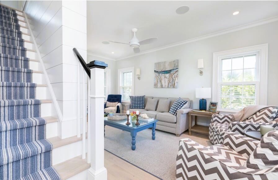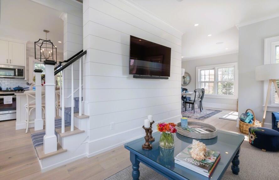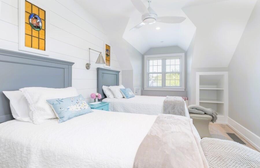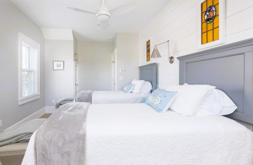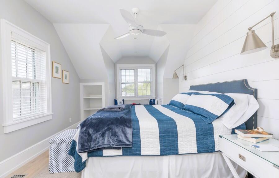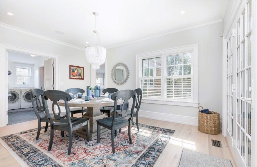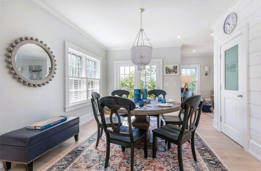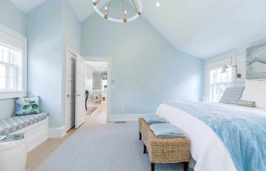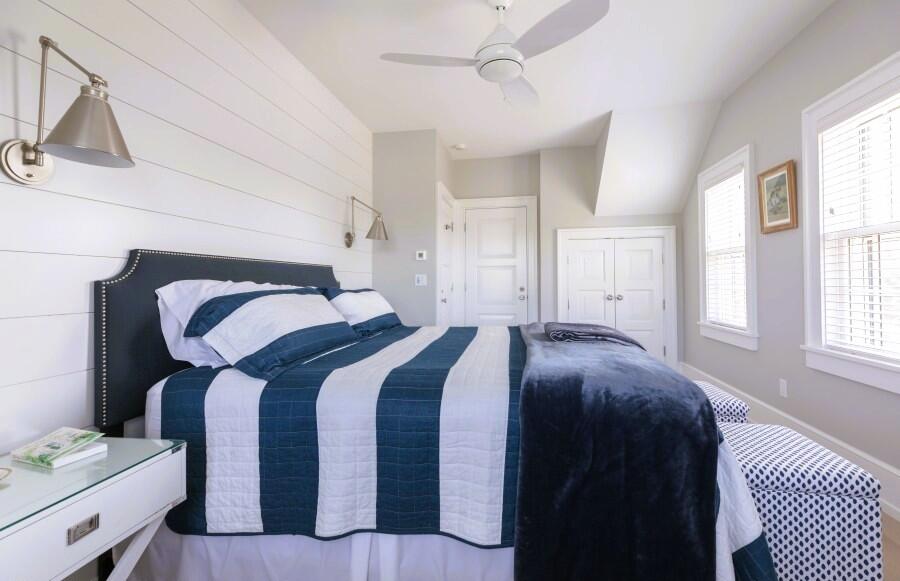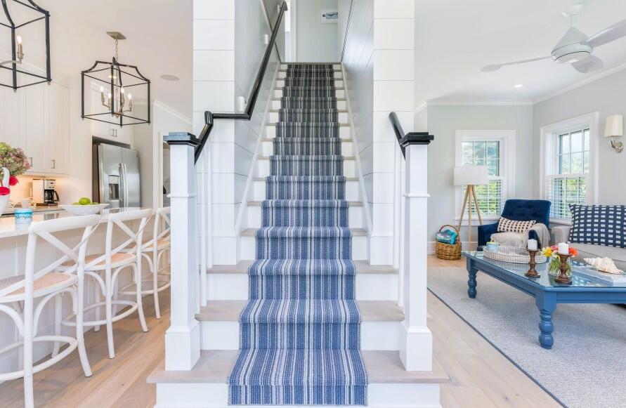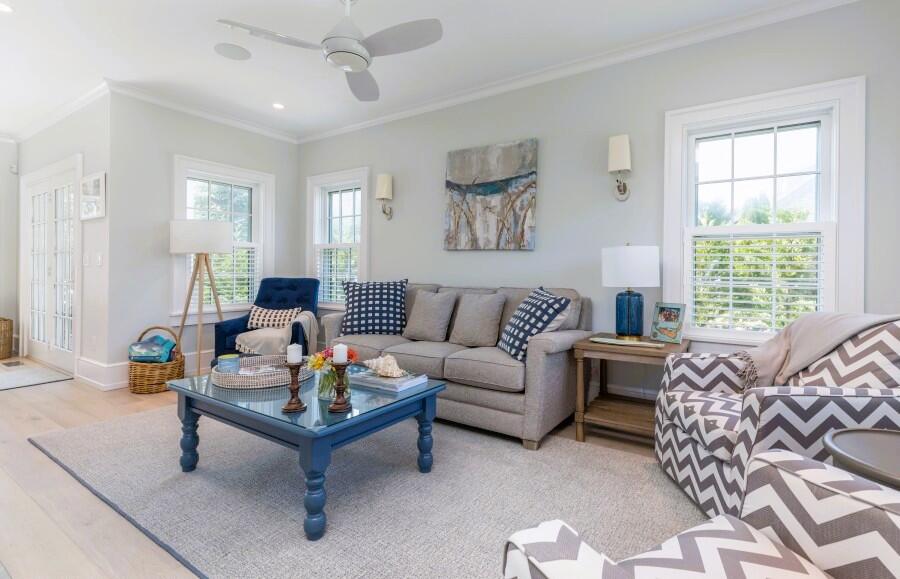 Located on a one-way street at the edge of town, this beautifully renovated and decorated home is close to shopping and dining in the downtown area. The first floor includes a living room with comfortable seating and large flat-screen television, a well-equipped kitchen with quartz countertops, stainless steel GE appliances, and island seating for four. Just beyond is the dining area with seating for six and French doors out to the back patio. Off of the kitchen is a mud/laundry room with a washer and dryer and a powder room. The master bedroom suite has a king bed, and a bathroom with double sinks and a glass-enclosed tiled shower. There are two guest bedrooms on the second floor, one with a queen bed and the other with twins. The bedrooms share a hall bathroom with double vanity and a glass-enclosed tiled tub/shower combo.