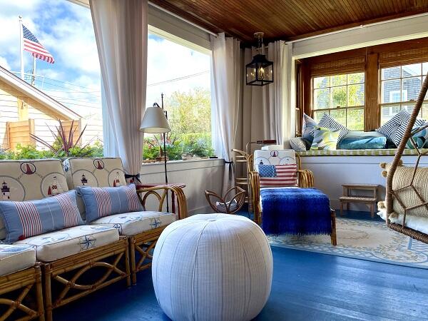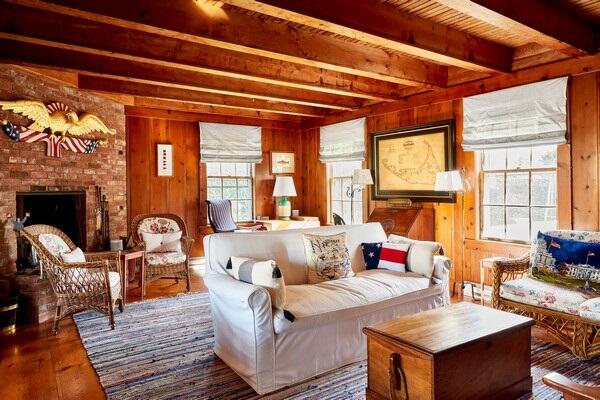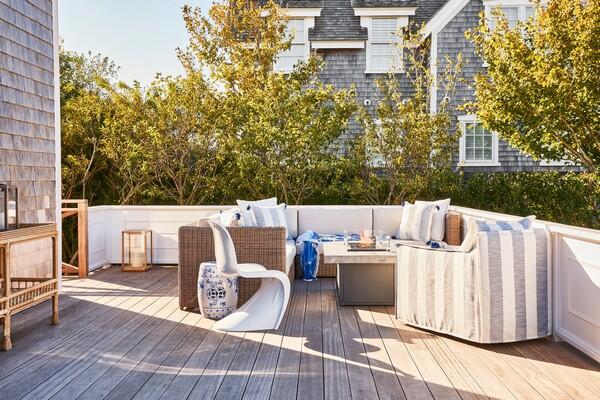 Rare Hulbert Avenue rental property, Gray Goose is a large 1920’s cottage with 6 bedrooms that comfortably sleeps 12. This authentic summer house has been beautifully enhanced for the 21st century in 2021 with its Rustic-Luxe interior & new expansive cabana-deck on Hulbert Avenue featuring a gas fire pit and an extra large custom outdoor shower. There’s a stunning secret sandy beach only 100′ across the street, down a right-of-way path to swim, picnic, SUP & sail. Community Tennis & Sailing at the Jetties Beach is a short 5 minute walk down the beach. Walking to Town takes 15 minutes. Views of Great Point Lighthouse from the front deck sectional, and water views from 4 of the bedrooms upstairs at this preferred spot on Brant Point. Summer House style with the look that Nantucket is famous for. New luxury linens and mattresses; and all new appliances in the well-stocked kitchen. Huge Frame TV with SONOS. Dog friendly; work-from-home option in the first floor primary suite which can be closed off from the rest of the house and overlooks gardens designed by The Sconset Gardener out of all 3 sides of its windows. Parking for 4 in the courtyard driveway on Hulbert.