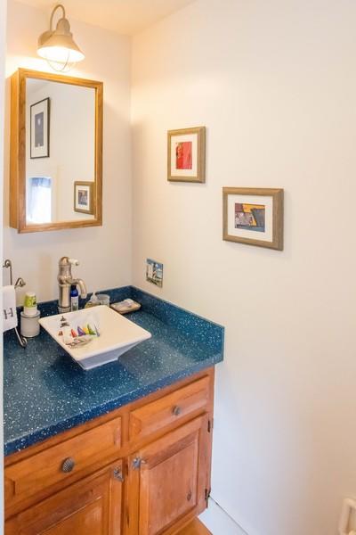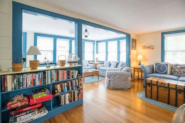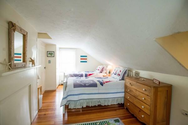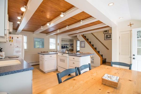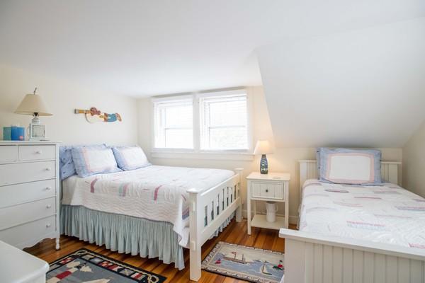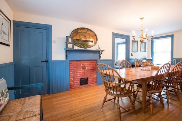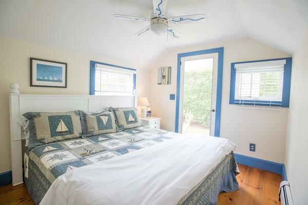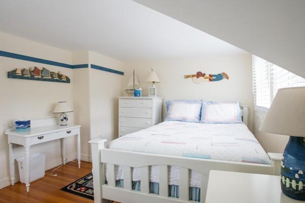 Charming house, just a 10-minute walk to Town. First floor: Kitchen with center island and breakfast table, step down to master bedroom with king bed and full bathroom (tub/shower). Walk-through dining room to a large living room with sleep sofa. Second floor: At top of the stairs on one side of the house, walk-through bedroom with twins leads to a bedroom with queen bed. On opposite side of stairway, Walk-through bedroom with twins leads to another bedroom with a full bed plus a single; Full bathroom (shower). Low ceiling entering one of the bedrooms on the second floor. Large private patio, hedged-in yard and garden area in the back of the house. High speed wireless internet.