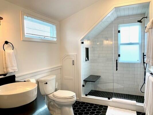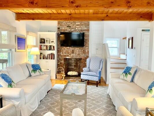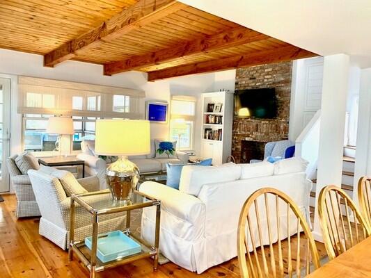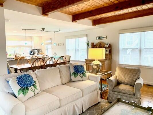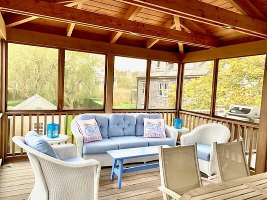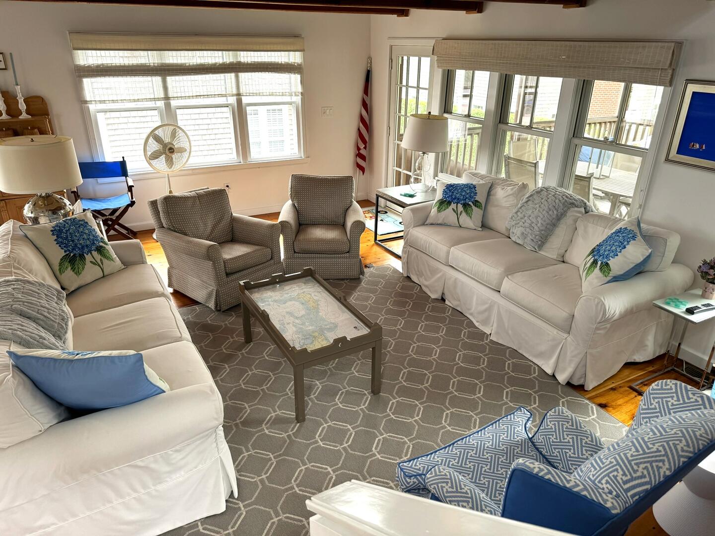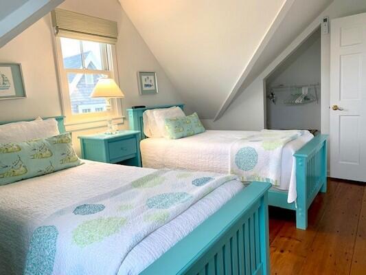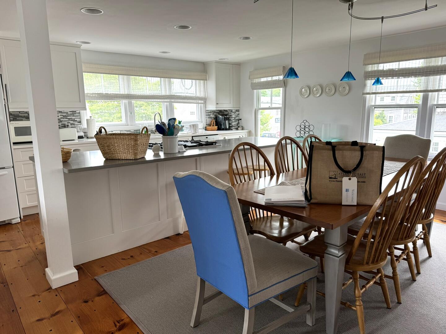 Attractive home on North Beach Street near Jetties Beach and tennis courts. First floor: Master king bedroom with private bathroom and another king bedroom with private bathroom. Second floor: living room open to dining room and kitchen, powder room, access to small deck off living room. Third floor: 2 bedrooms with 2 twin beds that share a private bathroom. Non-smoking house. Central air-conditioning.