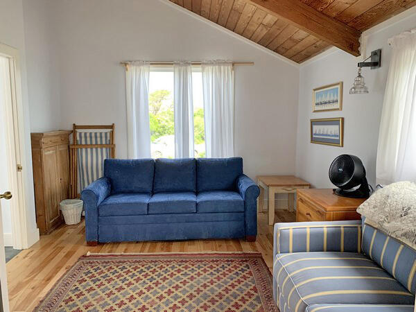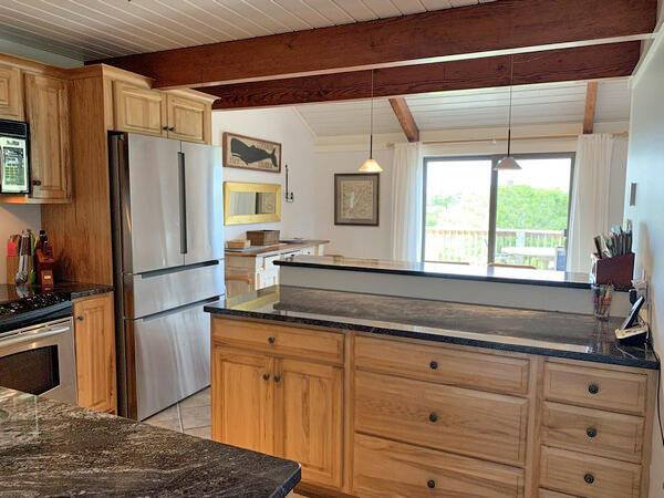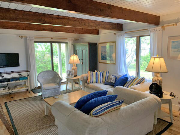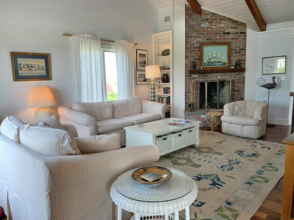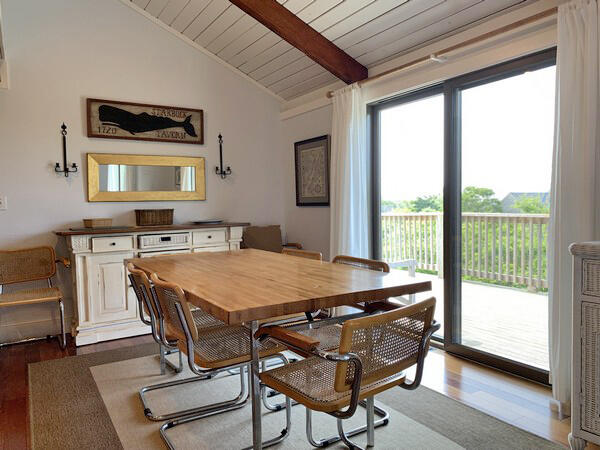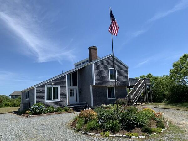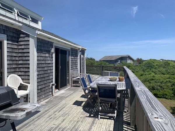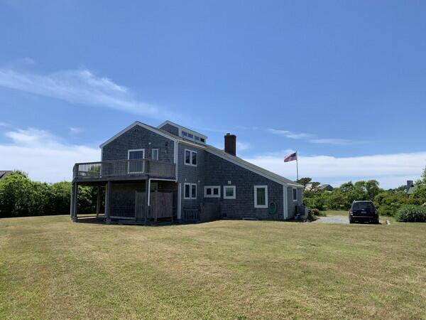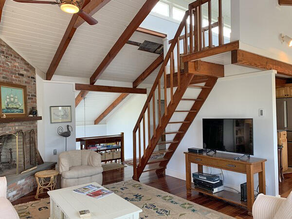 Recently updated summer home with distant views of the ocean. Just minutes to the beach. Large deck and yard. Wireless internet access. First floor: Game room with two sets of bunks and fireplace, washer/dryer and utility closet, bedroom (queen), half bath, bath (tub/shower). Second floor: Large living room with fireplace, sliders to large deck, dining room, kitchen, bedroom (king), bath (shower), stairs to sleeping loft (trundle).
