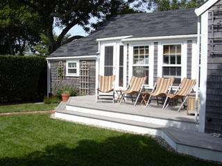 “Daisy Cot” has two bedrooms and a large common open living space. Deck and small private yard enclosed by manicured privet hedges. Charming cottage located in the center of Siasconset village. Tastefully decorated with an open floor plan.
