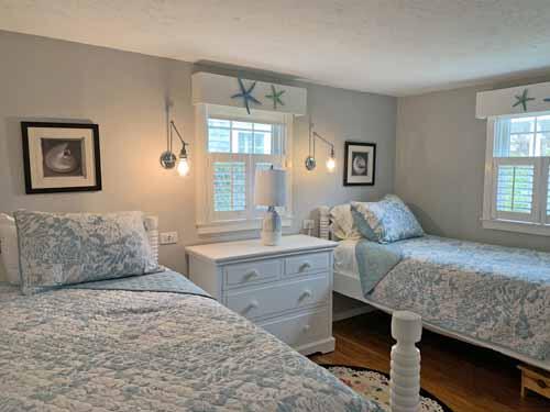 This ranch style cottage is located at the Stone Barn Inn. Great location and a short distance to Jetties Beach. Cathedral ceiling living room open to dining area and galley style kitchen. Off of hallway a full bathroom, two twin bedrooms, master bedroom with shower bathroom. No smoking. Side patio, front deck both with deck furniture.