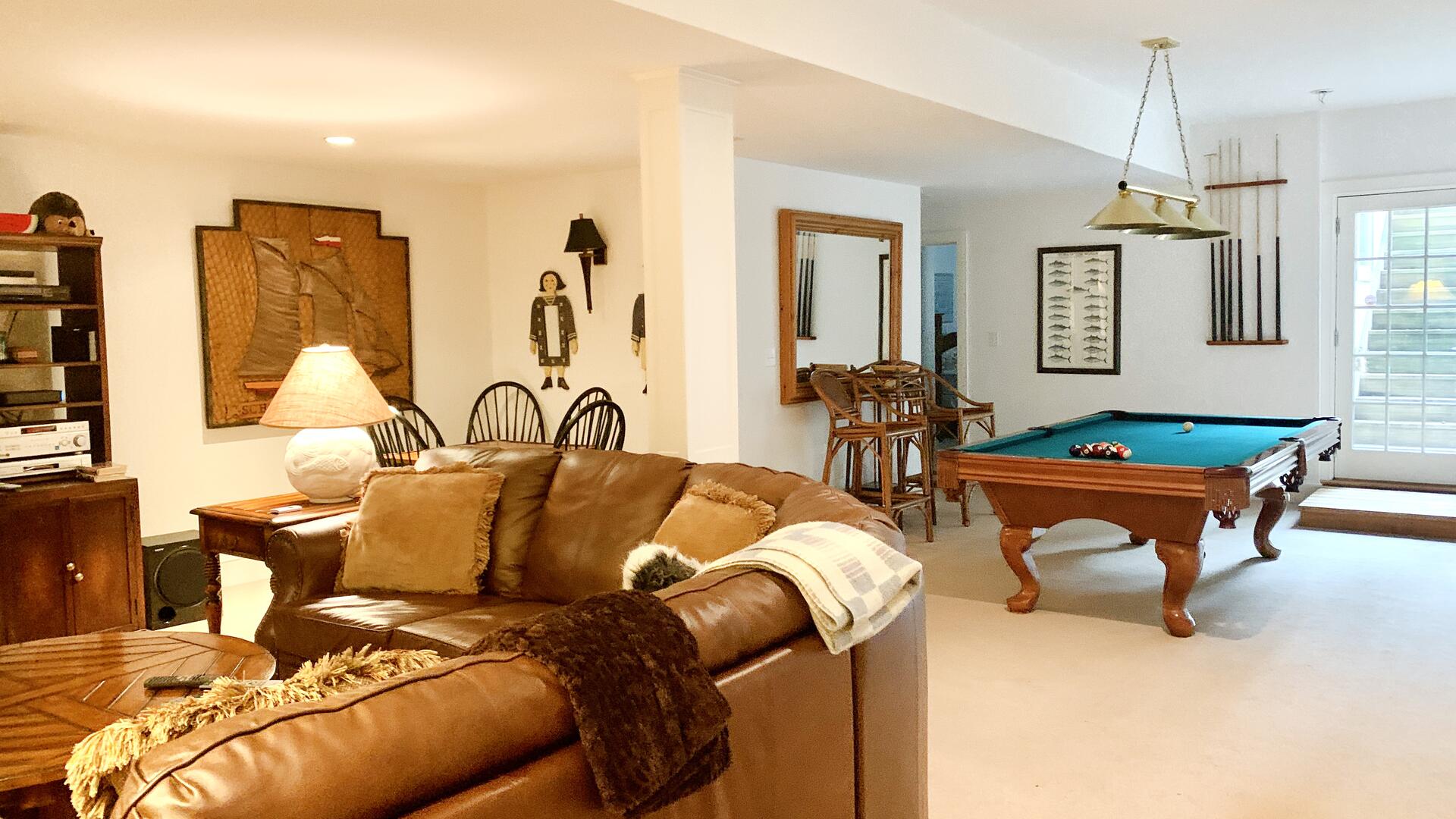 Newly built in 2005, this stunning home is located on the ocean side of Low Beach Road near the village of Sconset. First floor: Large living room with fireplace and dining area with doors to deck, sun room with doors to deck, high-end custom kitchen, laundry room. Second floor: King bedroom with private bath (tub/shower), Twin bedroom with full bath (shower) and doors to private deck, Queen bedroom with doors to private deck and private full bath (shower), master bedroom (king) with sitting area and office, doors to private deck and oversized full bath. Lower level: finished with large media room, wireless internet, pool table, small kitchen (refrigerator, sink and dishwasher), bedroom with queen bed and bunk beds, full bath (shower). Private entrance to lower level.
