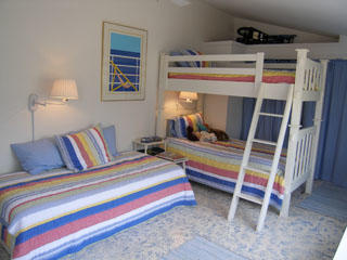 Sweeping water views from the open living and dining area with cathedral ceiling; separate wet bar with frig, updated kitchen; master bedroom (queen) with en-suite bath; 3 additional bedrooms (queen, bunks/single, queen) and 2 baths ; Outdoor shower. All bedrooms have individually controlled air-conditioning and ceiling fans. Abundant closet space and chest of drawers throughout.