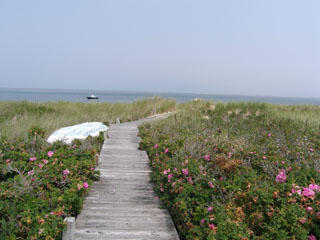 Amenities include high-speed Wi-Fi , flat screen TV, full array of household items, and a gas grill. You’ll love this house and location! You are greeted with a beautifully manicured private yard with mature plants, climbing roses, and herbs. The expansive mahogany deck with 3 seating areas and chaise lounges is perfect for entertaining and relaxing in the sun. Two full sized umbrellas over the teak dining tables provide shade so you can eat outdoors in comfort. The new walkway to the beach ends with additional seating overlooking the beach with steps down to the sand where there are Adirondack chairs. 2 kayaks, one single and double, waiting for you to explore Madaket Harbor. The beach is perfect for children as there are no waves and a gentle sand incline into the water. As itâs a private beach, so you can relax in serenity. Plenty of beach chairs are provided and Madaket and Smith Point beaches are a short walk away. A large private outdoor shower makes clean up from a day at the beach a breeze!