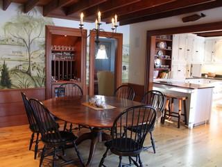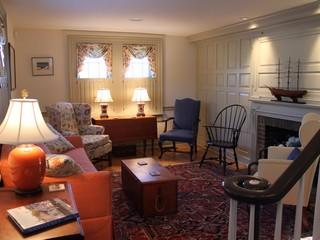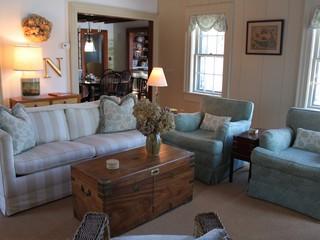 Quiet neighborhood in town near park and Main Street. Front entry, living room with fireplace, bedroom (twins) with full bath, dining room opens to upscale kitchen, family room with large flat screen t.v., mud room, laundry room, master bedroom suite (queen bed), bath with shower, patio, deck and private yard. Second floor (front staircase): open area with TV and pull out sofa, bedroom (Full size bed), full bath, Rear staircase to second floor: bedroom (queen bed), full bath. Second floor bedroom suites each have their own staircase.