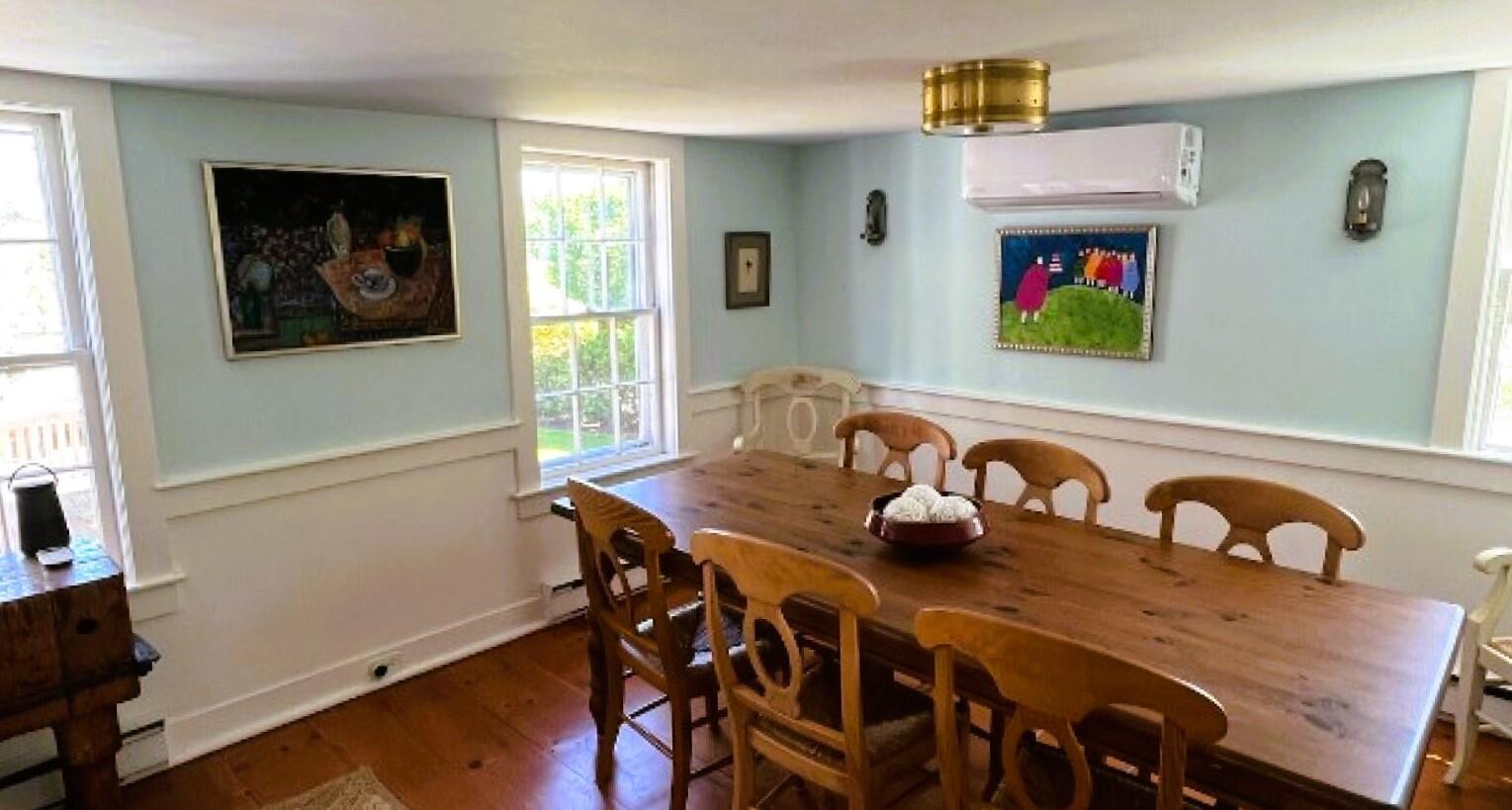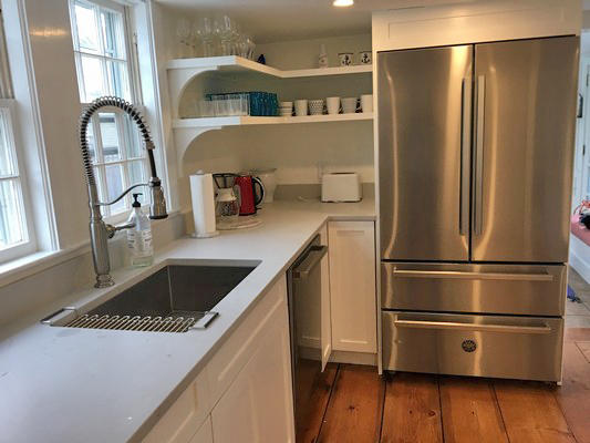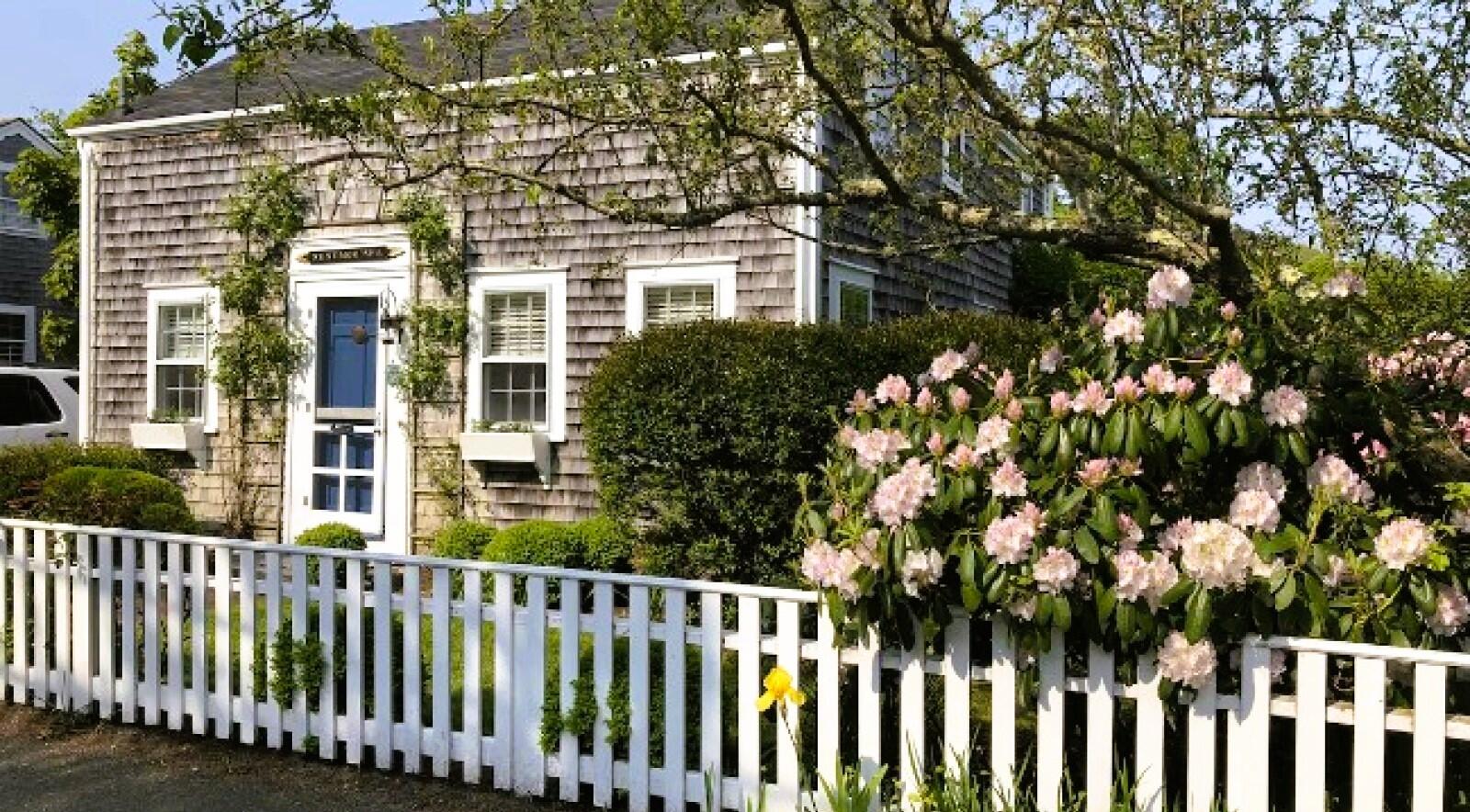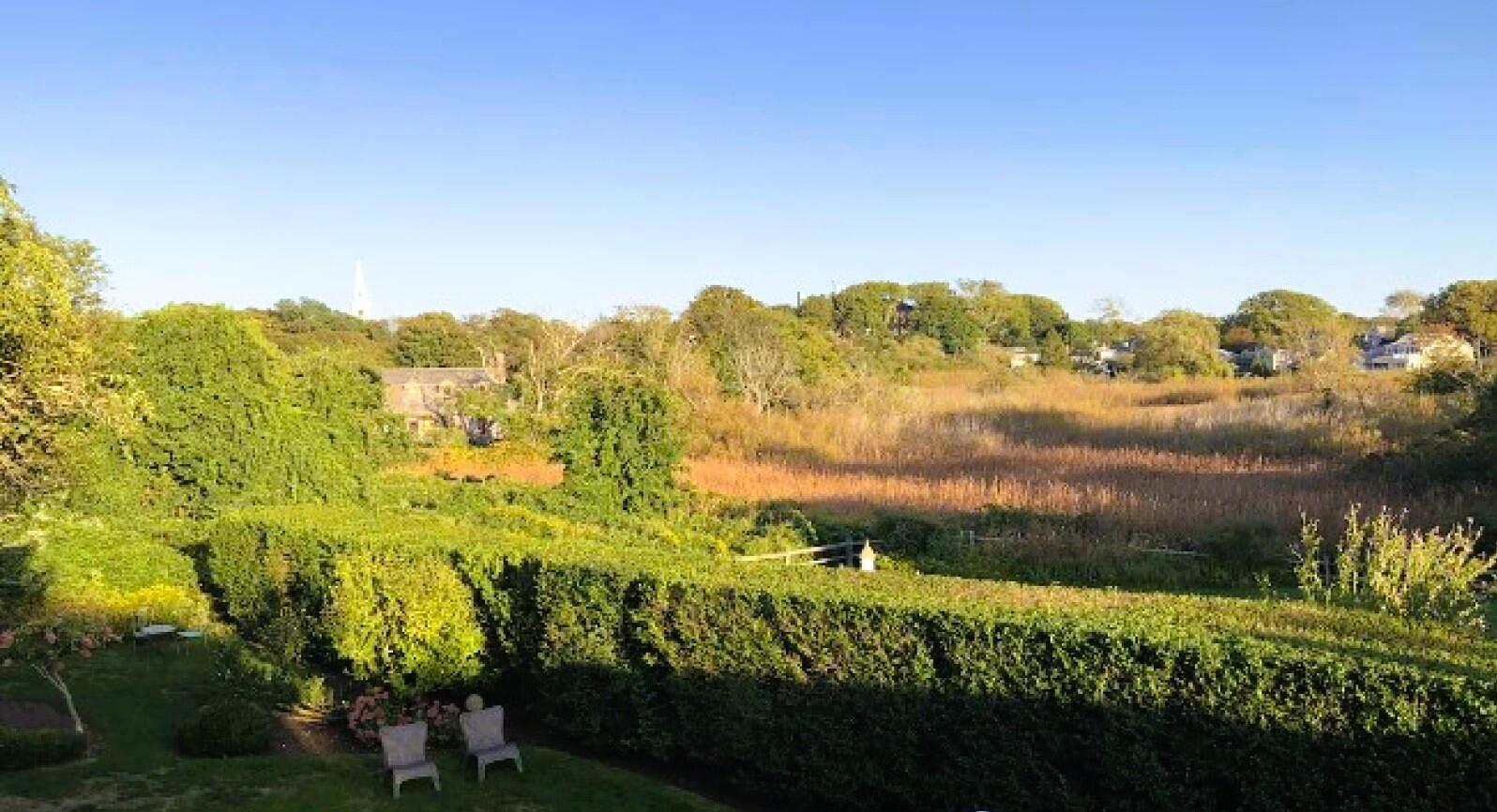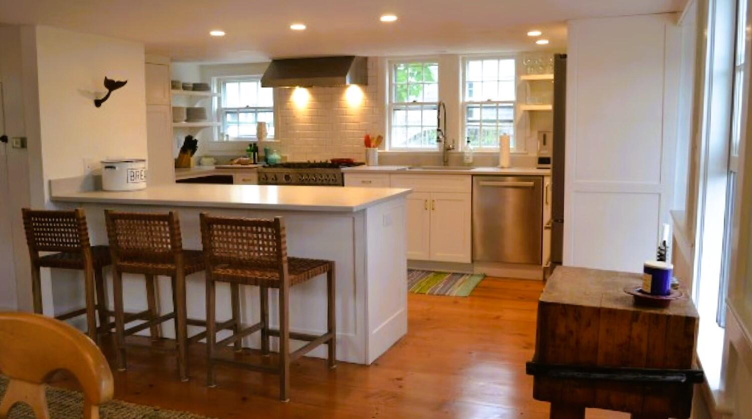 Charming in-town home with exceptionally large yard and beautiful gardens. First floor: Living room, dining room, kitchen, bedroom (double), bath (shower), laundry, new addition with TV room with wet bar, french doors to patio and gardens. Second floor: bedroom (twins) with private bath (tub with handheld shower), bedroom (trundle), Separate stairs to master bedroom suite with sitting area, private bath (shower) and private deck.
