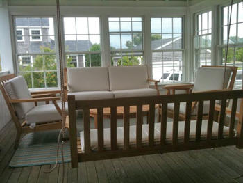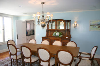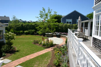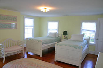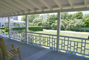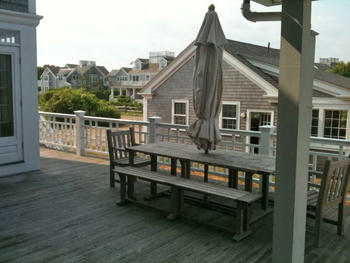 A magnificent eight-bedroom summer home located across the street from the path to the calm harbor beach. Wonderful Brant Point location, close to Town and Jetties Beach. All new furnishings in 2010. Relax on the covered porches and enjoy the spacious indoor & outdoor living areas and large yard. First floor: Entrance foyer, den with TV, formal living room, hallway to guest suite with full bathroom. Dining room, powder room, door to back porch. Spacious well-equipped kitchen and dining and pantry. Second floor: Two bedrooms with shared hallway bath, two guest suites, each with private bathroom, laundry room. Master suite with private deck, full bath & TV. Third floor: Two bedrooms share a full bathroom. Powder room, sitting room with desk and TV.