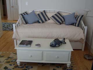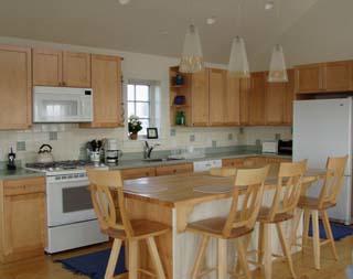 2600-square foot home, completed in October 2003. This upside-down house is on 3 acres, has cathedral ceilings, lots of sunlight, and sweeping ocean views. Warm, light, open, and peaceful describe this inviting getaway. Upper floor has an open floor plan: fireplace and cathedral ceilings in the living room and dining room; master suite with cathedral ceiling and balcony; kitchen has corian counters, maple butcher block island with Italian glass pendants. The Living room opens up to a large deck with 180-degree ocean views. The Upper floor also has a bath in the master bedroom and a powder room off the hall. First floor has a large entryway, 3 bedrooms, den and terrace doors that open to the second deck. The first floor also has 2 baths and a separate laundry room. Outdoors there is a large private yard with an outdoor shower. It is a short distance to the ocean and 6 miles to Town. All new furniture and landscaping. No air conditioning.