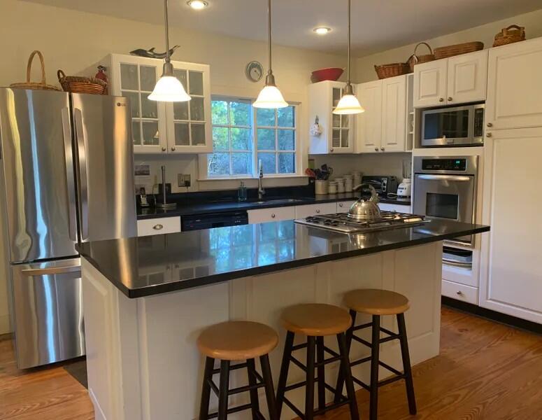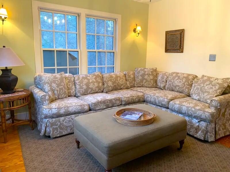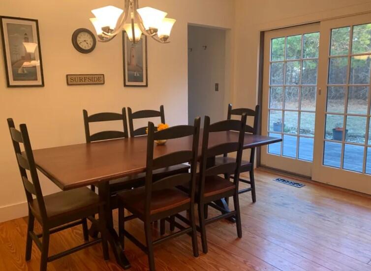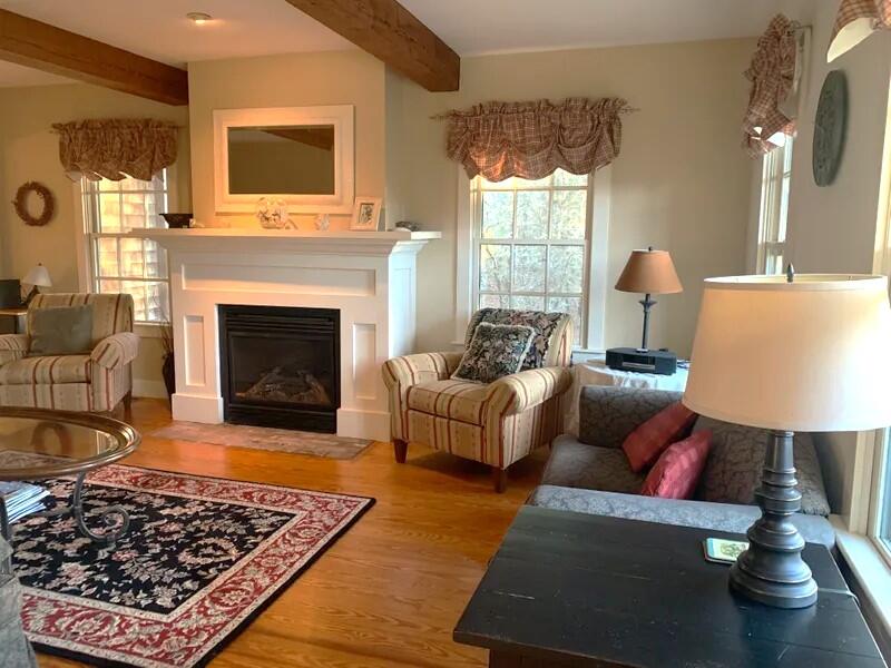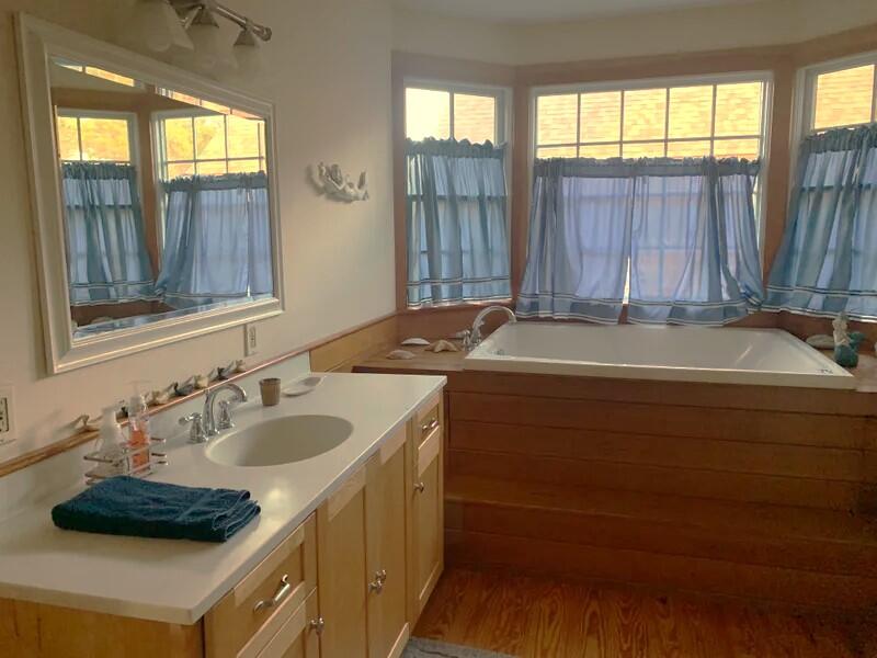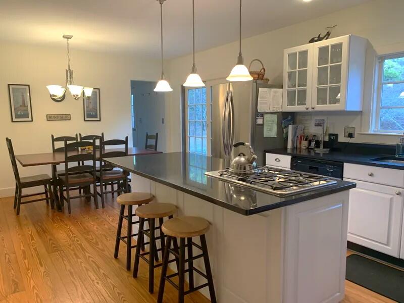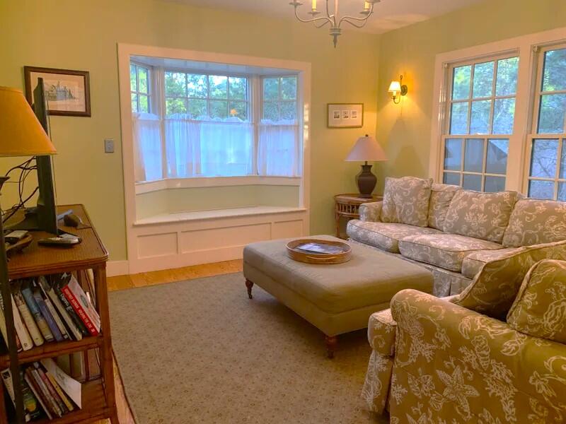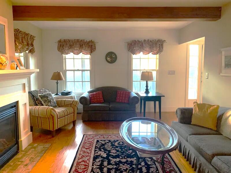 The first floor features an entry foyer, living room with new gas fireplace, family room/TV room with bay window, includes a 32″ flat screen TV. Large eat-in kitchen with granite counter tops and breakfast bar. Half bath and separate laundry off hallway. The primary bedroom includes a spacious bathroom with jacuzzi built into a bay window. On the second floor, you will find two bedrooms each with roomy closets, a hall bath with a tub and shower. Also, a bright, open area with large palladian window. Central AC throughout. Just a 10-minute walk to Surfside beach. Shuttle access at the street. Ideal location adjacent to the bike path.