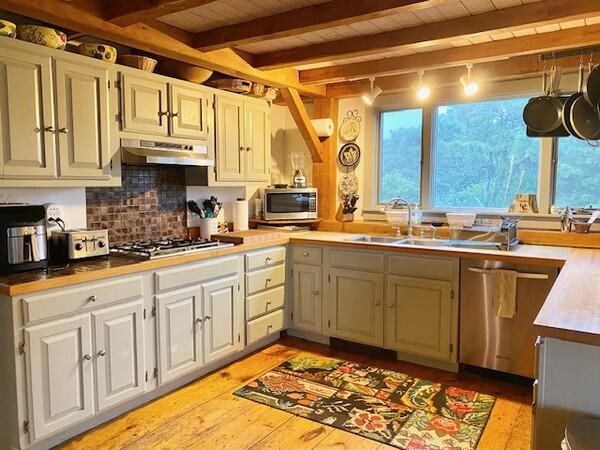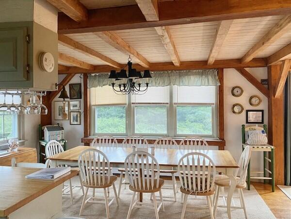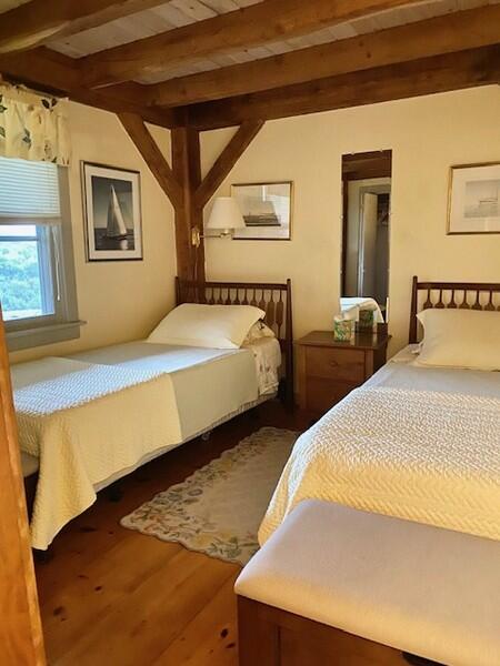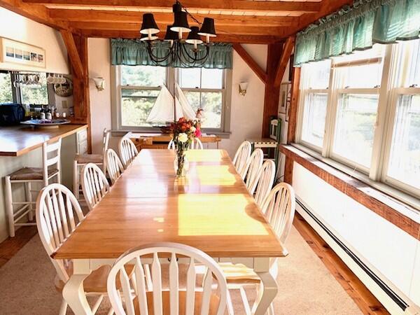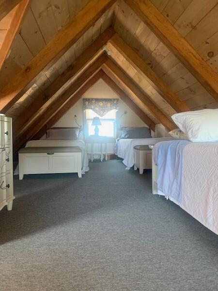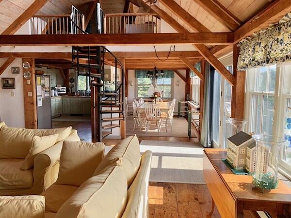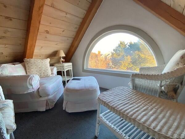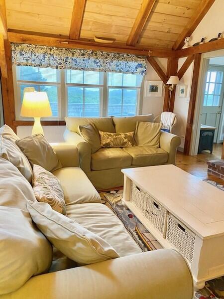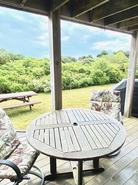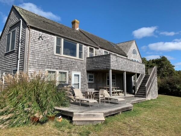 Roomy, 3000 square foot, post and beam, upside down home with multi-level decks and broad ocean views set on 2 acres. First Floor: Gracious entry way, Two large Master Bedrooms each with private bath. Third bedroom on the first floor has twin beds and hall bath. Second Floor: Cathedral ceiling living room with fireplace, open kitchen dining area and family room with large flat screen t.v. and ocean views with access to a deck facing the south shore. Large sleeping loft on the third floor has two double beds and sitting area with large windows facing the ocean.