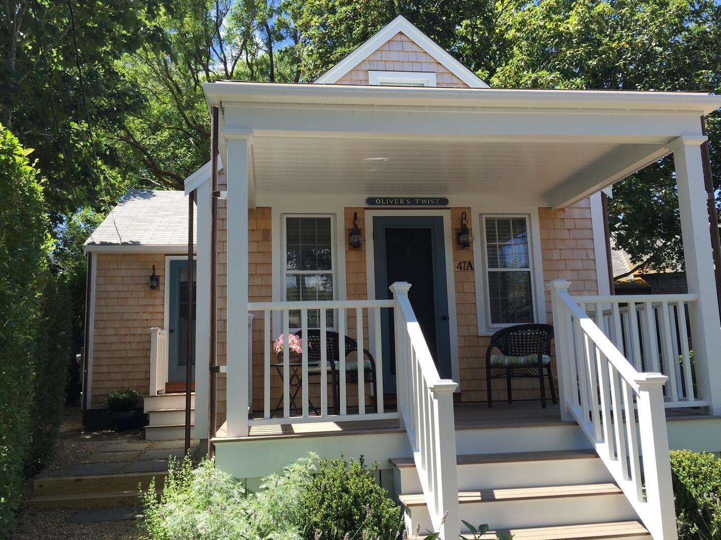 Charming cottage close to town with a small private side patio. Great vacation spot for three. Full kitchen, small living area. Bedroom (queen and daybed), bath (shower). One off-street parking spot available upon request.