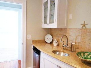 Unique home with hand painted murals, original art pieces and lots of outdoor living space located close to Surfside Beach. First floor: Open living space with large kitchen, sitting area, dining room with french doors to patio, family room and three bedrooms. Second floor: Master suite with french doors to deck.