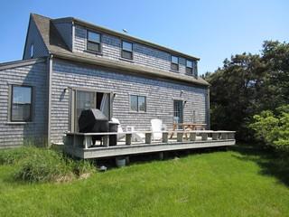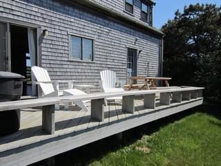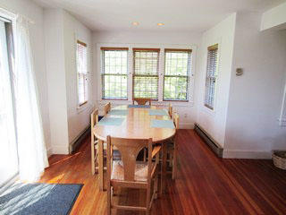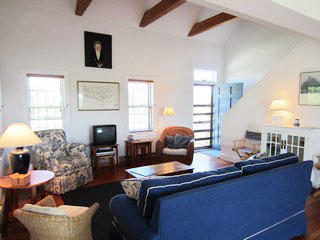 “Port Folio” at 99 Somerset Road is typically Nantucket. A two-story, cathedral ceiling, cedar shingled Cape that backs up to the lushly planted fields of Miacomet’s Bartlett Farm. This home is graced with hardwood floors throughout, with a sunlit living room, dining room and kitchen, a master bedroom with full bath, powder room and laundry room all on the first floor. Two bedrooms on the second floor share a full bath. Sliding doors give access to a spacious deck off the back which runs the entire length of the house offering the sunrise in the morning and spectacular evening sunsets.
